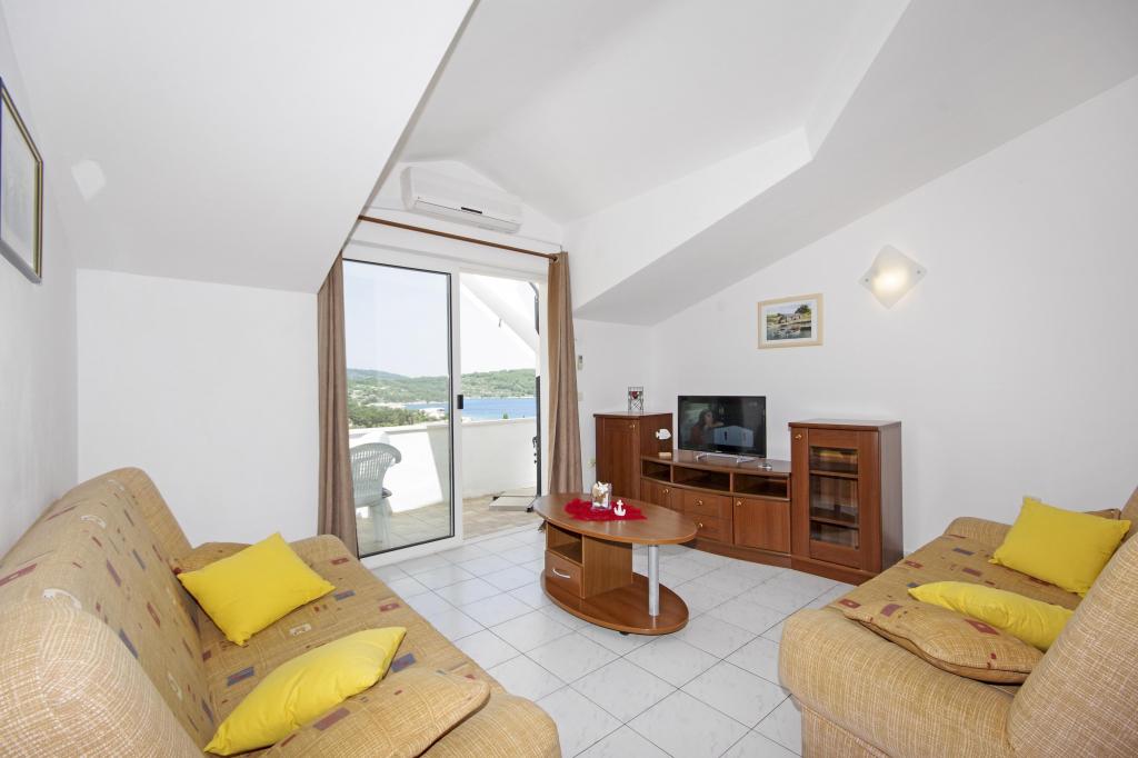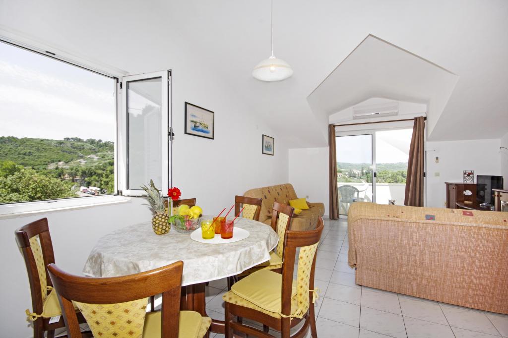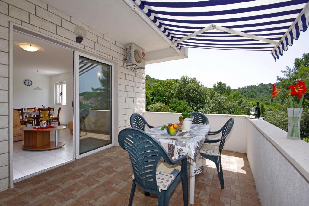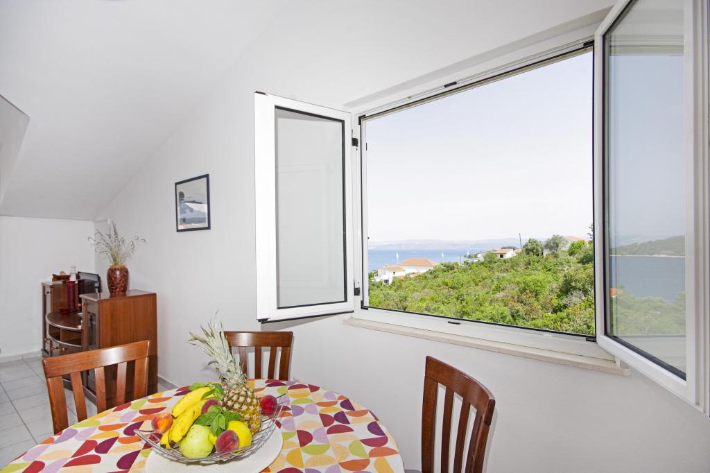 Schöne Insel, schöne Wohnung. Sehr nette Gastgeber, guter E-Mail-Kontakt. Schöne Aussicht von der Terrasse. Rogac wächst in der Nähe - die Schoten sind essbar