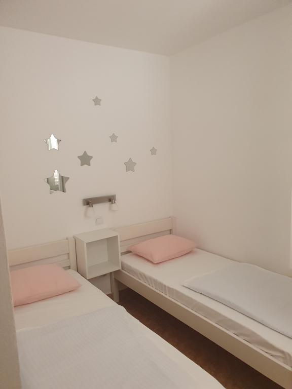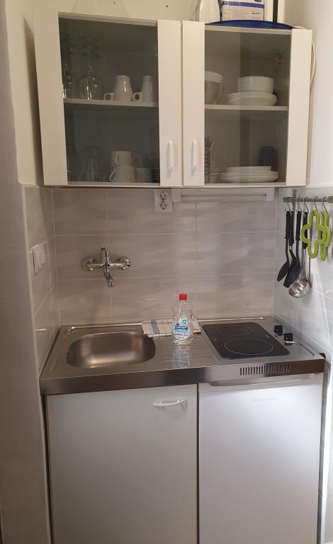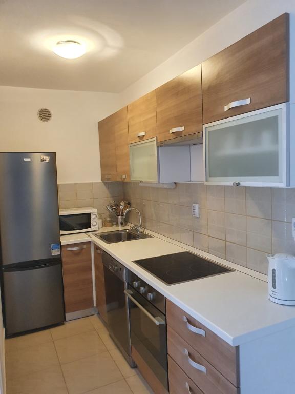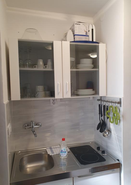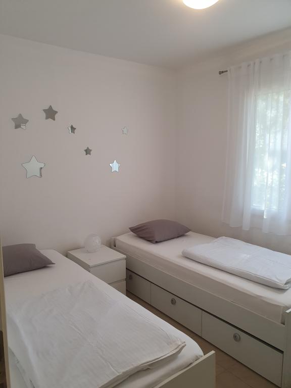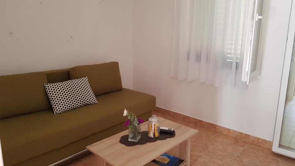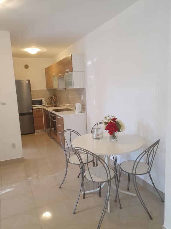 Komplett ausgestattete und dekorierte Apartments für einen komfortablen Aufenthalt für bis zu 6 Personen, gelegen in einem Pinienwald. Die Apartments liegen 3 Gehminuten vom Meer und einem wunderschönen Strand entfernt, der durch einen Pinienwald erreichbar ist. Die Apartments bestehen aus zwei Zimmern – eines mit einem Doppelbett und eines mit zwei Einzelbetten, einem Wohnzimmer mit einem Schlafsofa und einem LCD-TV, einem Esszimmer (größere Wohnung – entstanden durch die Umwandlung zweier kleinerer Wohnungen in eine große Wohnung von 60 m²), einem Badezimmer, einer kompletten Küche mit Geräten wie Wasserkocher, Kaffeemaschine (Waschmaschine und Geschirr in der größeren Wohnung) und einer Terrasse mit der Möglichkeit, einen Grill zu nutzen. Jedes unserer Apartments ist mit Bettwäsche, Handtüchern, Küchenutensilien und Geräten ausgestattet, die für einen reibungslosen Aufenthalt erforderlich sind. Die gesamte Umgebung (Kiefernwald, Nähe und Anordnung des Strandes und des Meeres, Schutz der Promenade vor der Straße) stellt eine ideale Umgebung für Entspannung und einen Familienurlaub mit kleinen Kindern oder einem Haustier dar.