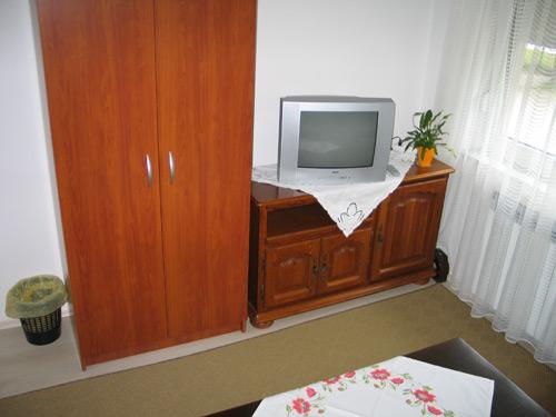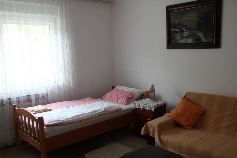 Die Fläche von 66m2 liegt im 1. Stock eines Einfamilienhauses, es verfügt über zwei Schlafzimmer mit je 2 Betten und ein Wohnzimmer mit zwei Zustellbetten. Das Badezimmer ist mit einer Badewanne, einem Haartrockner, einem Bidet und einem Waschbecken ausgestattet. Die Küche ist standardmäßig ausgestattet mit Geschirr zum Zubereiten und Servieren von Speisen und Getränken, sowie Besteck in entsprechender Menge, Kühlschrank, Gefrierschrank 10L. Alle Räume in der Wohnung verfügen über Heizung, SatTV in beiden Räumen. Parkplätze sind vorhanden.