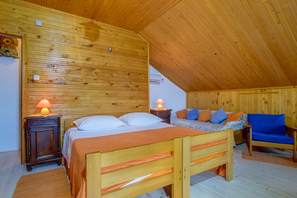 In der Nähe unseres Hauses führt ein Wanderweg auf den Gipfel unseres kleinen Berges Osoršćica (588 m), der einen wunderschönen Panoramablick auf das Meer und die umliegenden Inseln bietet. So können Sie morgens wandern (der Aufstieg dauert eine Stunde) und anschließend im Meer schwimmen (der nächste Strand ist 6 Autominuten entfernt). In Nerezine finden Sie ein Geschäft, eine Pizzeria, Restaurants, Konditoreien und Cafés, einen Baumarkt und Souvenirläden. Wir haben auch ein 500 Jahre altes Franziskanerkloster, eine Apotheke und eine Touristenambulanz. Es besteht auch die Möglichkeit, Boote zu mieten. Die Stadt Mali Lošinj ist 16 km entfernt und bietet ein reichhaltiges und vielfältiges Angebot an Einrichtungen und Unterhaltung für jeden Geschmack. Verschiedene Strände, von Kies- bis Felsstränden, außergewöhnlich klares Meer, eine große Auswahl an Bootsausflügen zu den umliegenden Inseln, ein reichhaltiges Angebot an Geschäften und Restaurants. Zahlreiche Rad- und Wanderwege und der wunderschöne Kiefernwald Čikat, verschiedene Sportmöglichkeiten und Freizeitmöglichkeiten im Freien. Apoxyomenos-Museum und Abendmusik auf dem Lošinjer Platz.