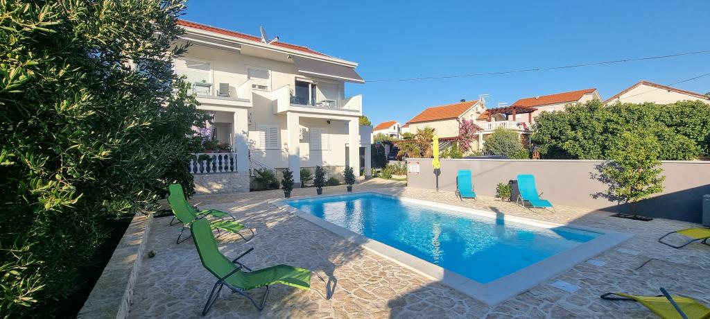 Unser Haus liegt in einer sehr schönen und sehr ruhigen Gegend im malerischen Städtchen Vrsi. Schöne Landschaft, schöne Natur, interessante Kultur und gesundes Klima sind die Eigenschaften, die uns von anderen Orten unterscheiden. Der Hauptstrand ist ganz in der Nähe unseres Hauses und kann durch einen kurzen Spaziergang (80 Meter oder 2 Minuten zu Fuß) erreicht werden. Das Haus verfügt über zwei moderne Wohnungen, die 2019 gebaut wurden. Das größere Apartment „Alan 3“ hat 4 Sterne und ist ideal für große Familien bis zu 6 Personen, während das kleinere Apartment „Alan 2“ mit 3 Sternen für Familien mit bis zu zwei Kindern gedacht ist oder zu einem romantischen Rückzugsort für Paare werden kann Liebe. Jedes Apartment verfügt über einen Balkon mit Blick auf die schöne Bucht und einen großen beheizten Pool, der auf der einen Seite von einem wunderschön angelegten Garten mit Blumen und Zitrusfrüchten und auf der anderen Seite von einem kleinen Olivenhain umgeben ist, der an heißen Sommertagen angenehmen Schatten spendet. Die Terrasse mit Sitzgelegenheiten sorgt tagsüber oder an Sommerabenden für entspannende Momente.