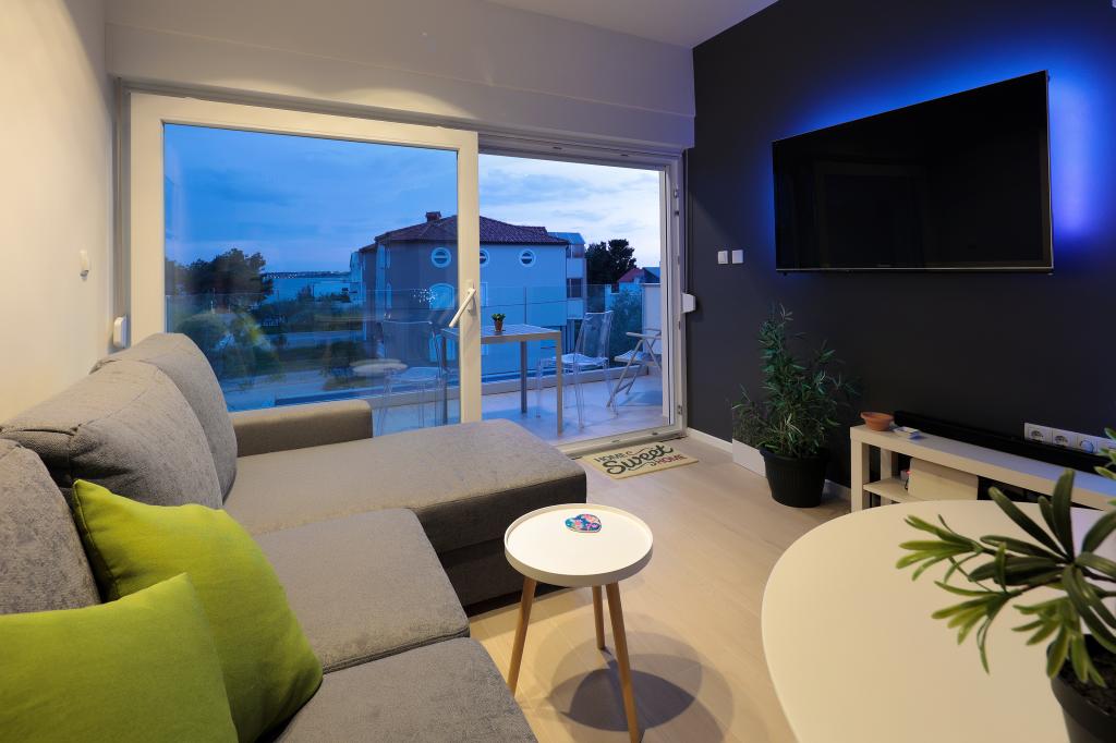 Die Apartments sind luxuriös ausgestattet mit Inverter-Mitsubishi-Klimaanlagen in jedem Zimmer, großem Diagonal-TV mit allen europäischen Satellitenprogrammen, Netflix, moderner Küche mit Induktionskochfeld, Badezimmer mit Dusche, großer moderner Balkonmarkise, die sich hebt und senkt, und großer Wohnung "Alan 3 " hat einen Schreibtisch mit einem 4K-Monitor mit großer Diagonale. Sie können auch Elektrofahrräder mit einer Reichweite von über 60 km mit einer Akkuladung ausleihen.