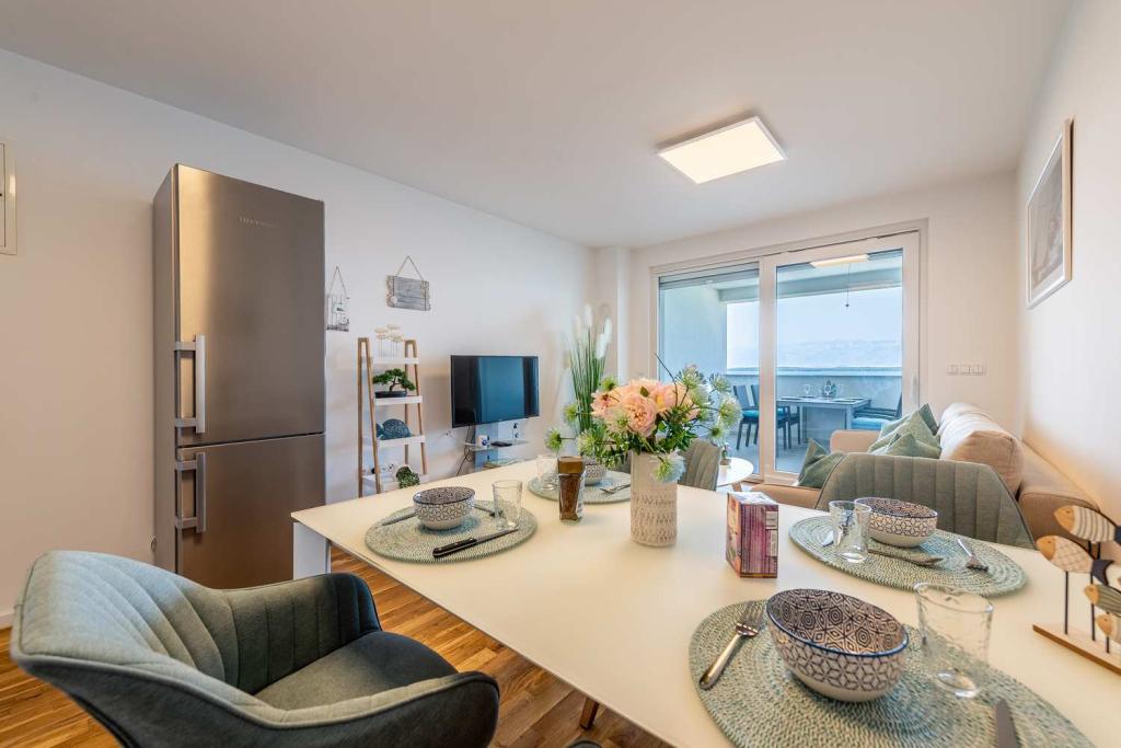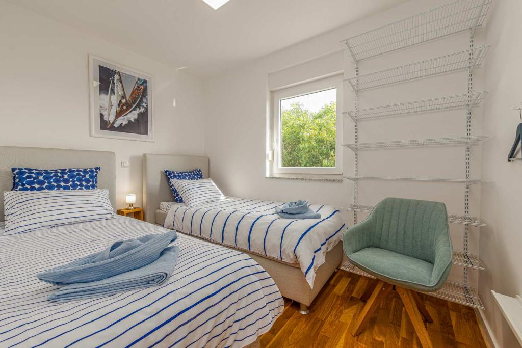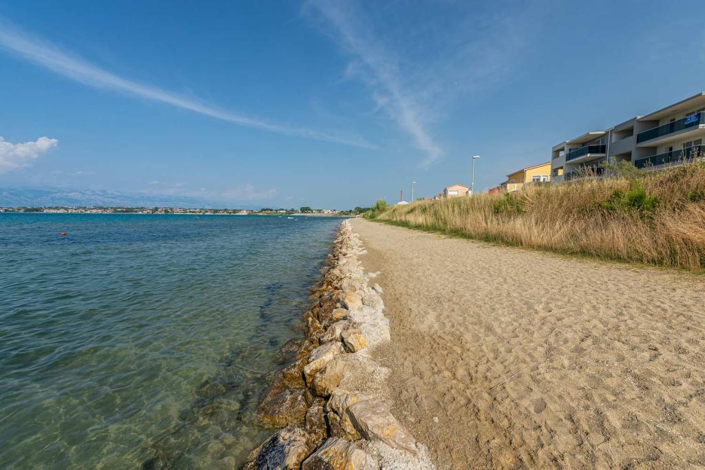 Erste Reihe zum Meer! Nur 10 Meter vom Fußgängerstrand entfernt. 5 Minuten von der Altstadt von Nin. Modernes, geschmackvoll eingerichtetes Apartment mit sehr gut ausgestatteter Küche (Geschirrspüler, Toaster, Wasserkocher, Kaffeemaschine, Mikrowelle, Kühl- und Gefrierschrank, Backofen, 4-Kochfeld). 1 Schlafzimmer mit Doppelbett + 1 Schlafzimmer mit 2 Betten. Dusche und Waschmaschine. Fantastischer Meerblick von Ihrer Terrasse.