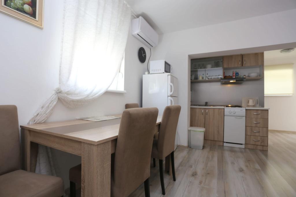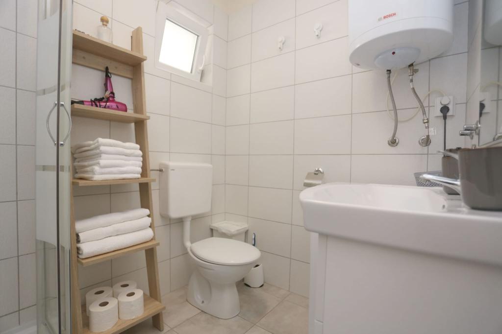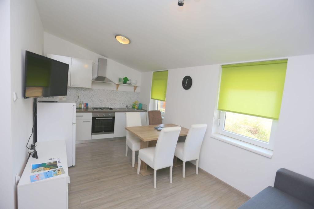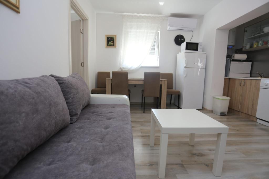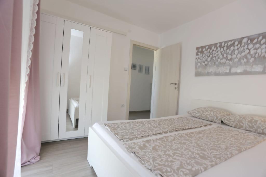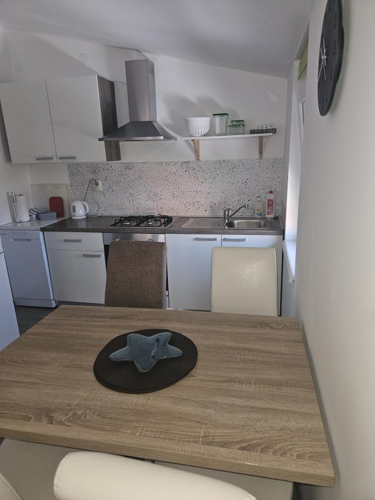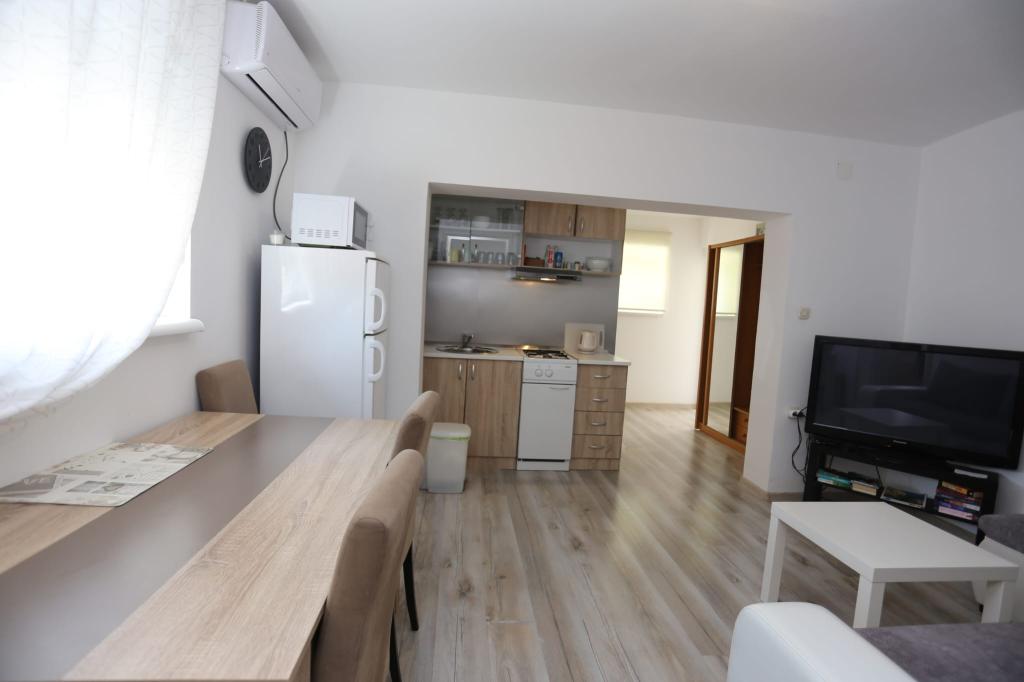 Die Apartments befinden sich in einem Haus mit insgesamt 4 Wohneinheiten sowie einem Parkplatz für 6 Fahrzeuge. Zum Strand sowie zum nächsten Restaurant und Geschäft sind es 10 Gehminuten. Die Apartments sind komplett möbliert und ausgestattet. WLAN-Internet, Nutzung einer Außendusche, Klimaanlage, Bettwäsche, Handtücher. Den Gästen stehen ein Holzkohlegrill und eine Peka zur Verfügung (falls sie Mahlzeiten auf dem Grill (Gradela) oder der Peka zubereiten möchten).