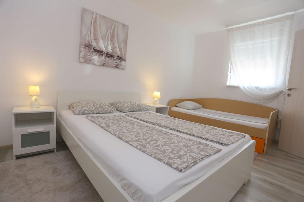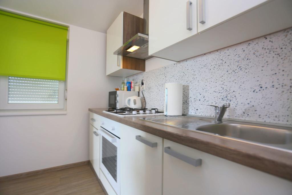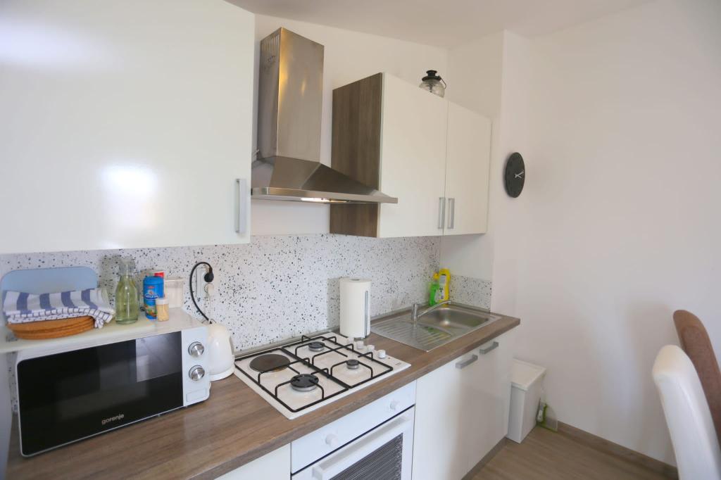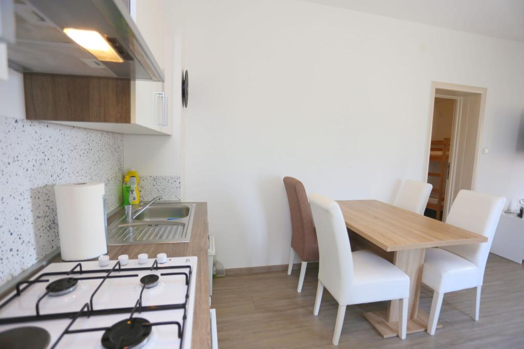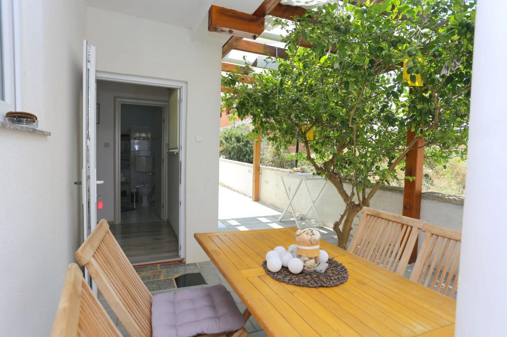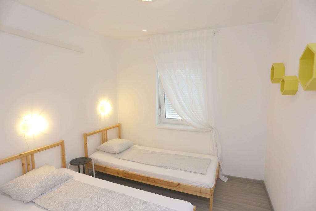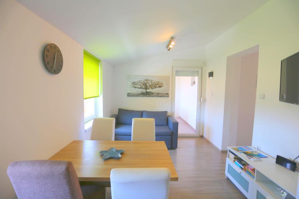 Die Apartments befinden sich in einem Haus mit insgesamt 4 Wohneinheiten sowie einem Parkplatz für 6 Fahrzeuge. Zum Strand sowie zum nächsten Restaurant und Geschäft sind es 10 Gehminuten. Die Apartments sind komplett möbliert und ausgestattet. WLAN-Internet, Nutzung einer Außendusche, Klimaanlage, Bettwäsche, Handtücher. Den Gästen stehen ein Holzkohlegrill und eine Peka zur Verfügung (falls sie Mahlzeiten auf dem Grill (Gradela) oder der Peka zubereiten möchten).