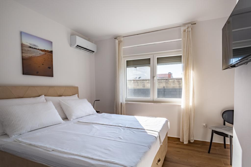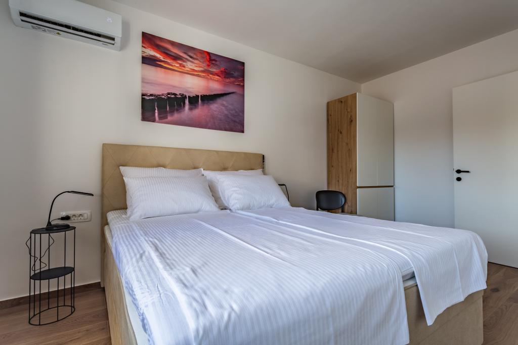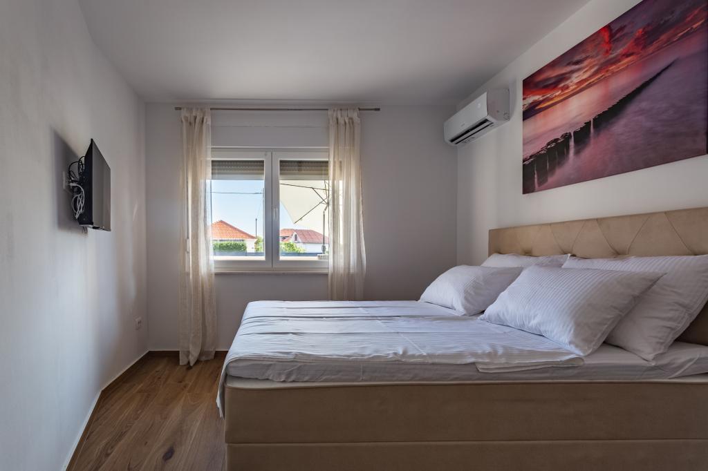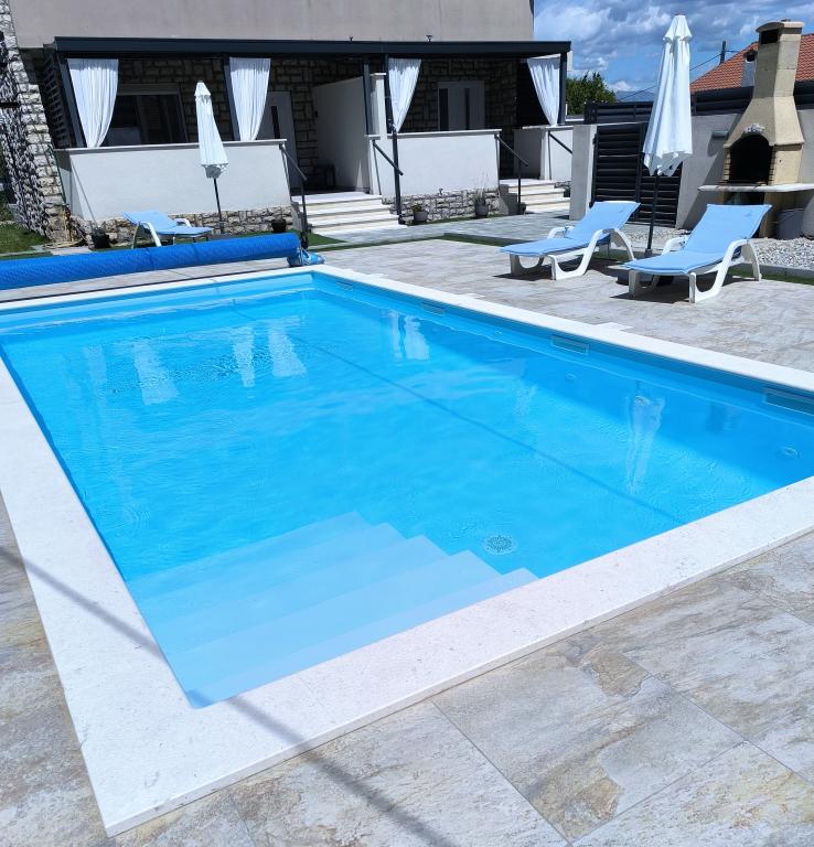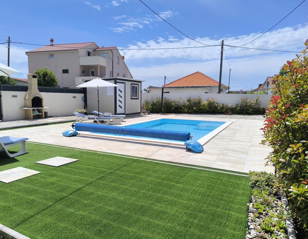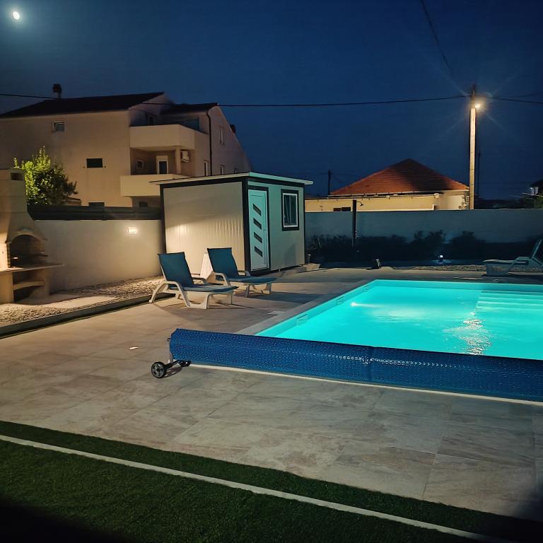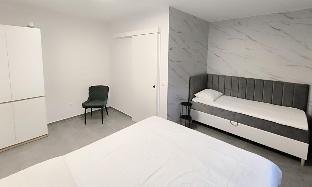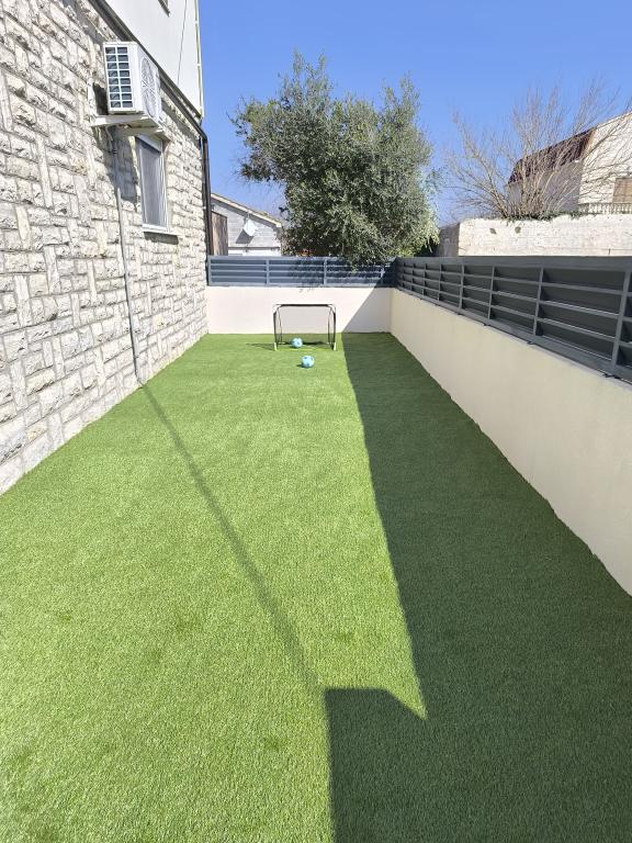 Beheizter Pool (geschlossen vom 15.10.2025 bis 1.5.2026) Willkommen in den Royal Place Apartments, Apartments im charmanten Königsstädtchen Nin, nur 16 km von der historischen Stadt Zadar entfernt. Wir bieten zwei luxuriöse Apartments im Erdgeschoss: ein Apartment mit einem Schlafzimmer (Familienzimmer mit Doppelbett und Einzelbett) und ein Apartment mit zwei Schlafzimmern in ruhiger Lage, nur 200 Meter von der malerischen Strandpromenade, Restaurants und dem Stadtzentrum entfernt. Der Strand ist 700 Meter entfernt. Das große Erdgeschoss verfügt über einen ruhigen, umzäunten Innenhof mit üppiger mediterraner Vegetation. Außerdem gibt es einen beheizten Salzwasserpool, eine Liegewiese mit Liegestühlen und Sonnenschirmen, eine Außendusche und einen Grill. Das Obergeschoss ist nicht zugänglich.