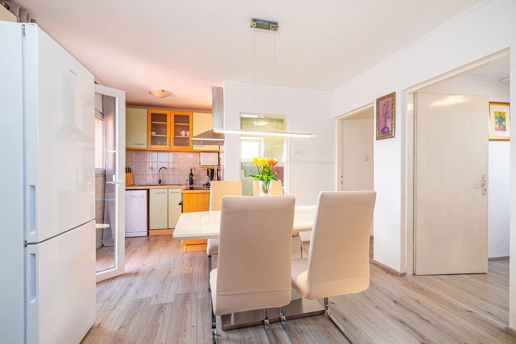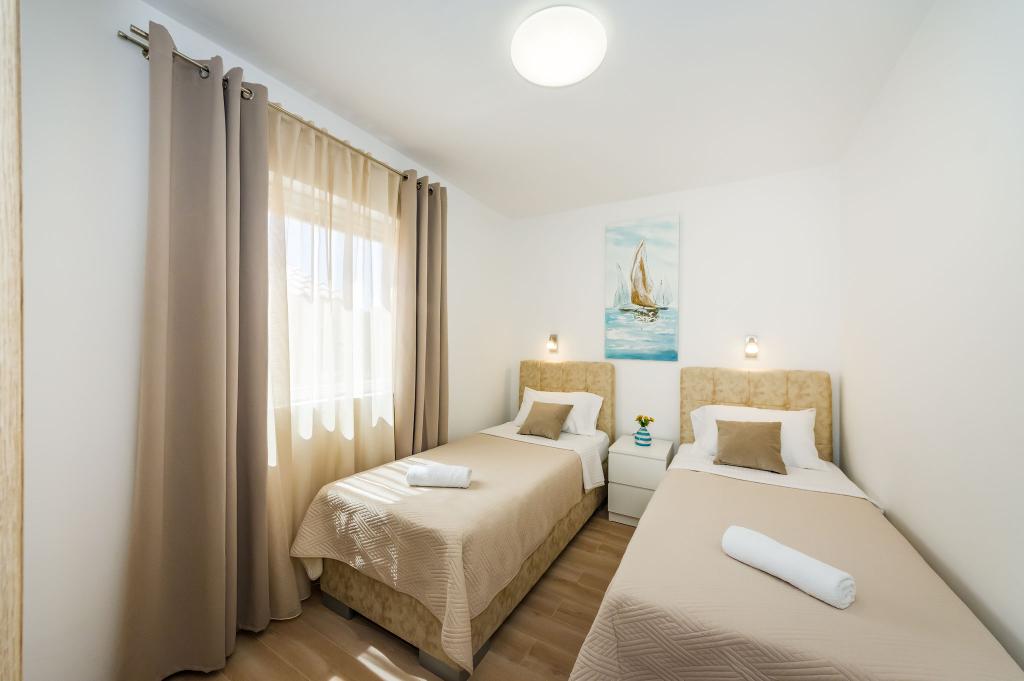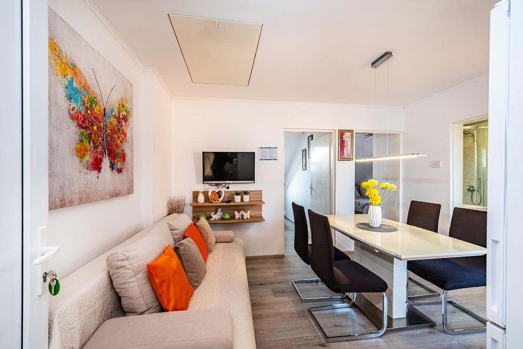 Unsere modernen Apartments befinden sich in Nin, einem Küstenort im südlichen Teil der Bucht von Nin auf der Halbinsel Ždrijac, 17 km nördlich von Zadar. Nin ist die älteste Königsstadt Kroatiens und liegt in der Nähe des berühmten Sandstrandes Ždrijac. Die Stadt ist nicht nur historisch bedeutsam, sondern bietet zusammen mit ihrer Umgebung auch ideale Bedingungen für Erholung und Freizeit. In der Umgebung von Nin befinden sich mehrere lange Sandlagunen mit ruhigen Sandstränden abseits des Trubels sowie ein Industriegebiet mit hervorragendem Mikroklima. Die Apartments liegen in einer schönen und sehr ruhigen Gegend, nur fünf Gehminuten vom Strand und der Adria entfernt. Das Haus erstreckt sich über zwei Etagen. Die Eigentümer wohnen im Erdgeschoss, zwei Apartments befinden sich im ersten und zwei im zweiten Stock. Das Haus ist freistehend und das Grundstück ist umzäunt, sodass es sich ideal für Familien mit Kindern eignet. Es gibt Parkplätze für fünf Autos und einen Grillplatz im Garten. Die Apartments sind nicht barrierefrei. WLAN ist verfügbar. Der Strand und das Meer sind nur 100 m von den Apartments entfernt, weitere Einrichtungen befinden sich in 600 m Entfernung.