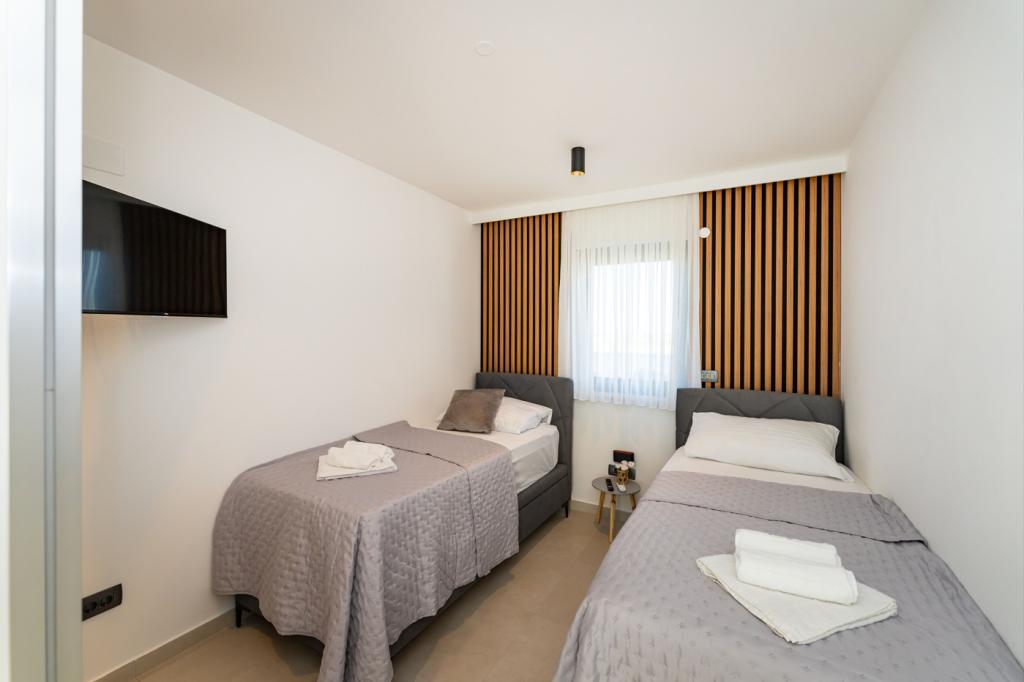Villa LaMag, eine moderne Neubauvilla, befindet sich im schönen, ruhigen Dorf Vrsi Zukve, 20 km von Zadar, 5 km von der Königsstadt Nin und etwa 2,5 Autostunden von Zagreb entfernt. Der Strand ist nur 3 Gehminuten entfernt, das nächste Restaurant nur 400 Meter und der Supermarkt weniger als einen Kilometer. Erkunden Sie die wunderschönen Sandstrände von Nina und Ljubača (10 Autominuten) oder besuchen Sie die nahegelegenen Inseln Pag und Vir, die durch eine Brücke verbunden sind. Der historische Charme der Altstadt von Zadar mit ihren engen Gassen und kulturellen Schätzen ist nur 25 Autominuten entfernt. Dies macht Ihre Wohnung zum perfekten Ausgangspunkt, um die Wunder dieser unglaublichen Küstenregion zu entdecken.