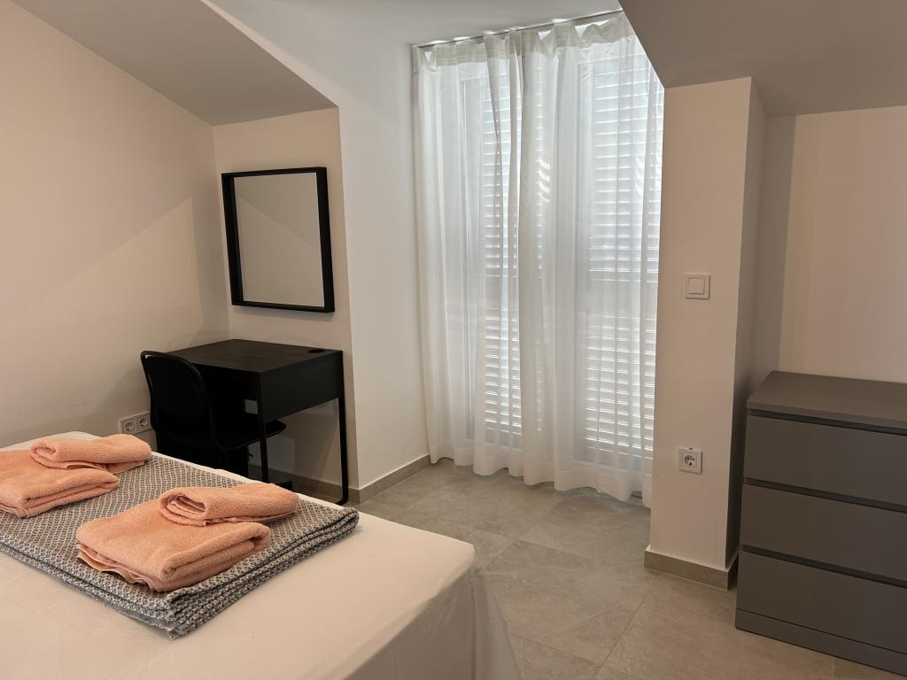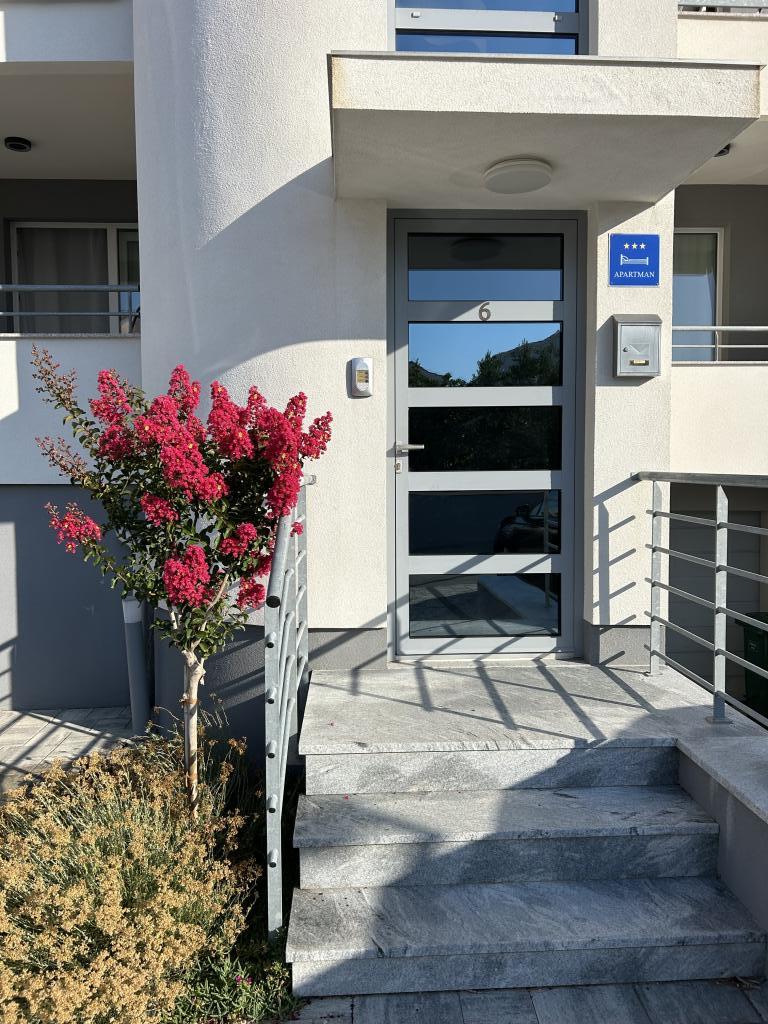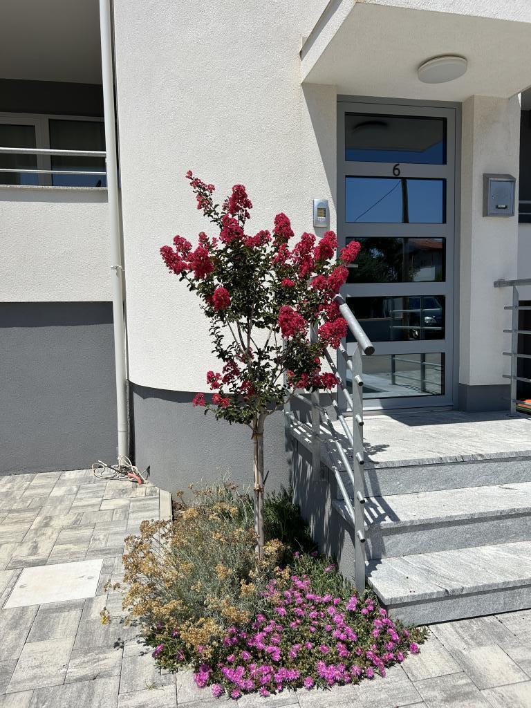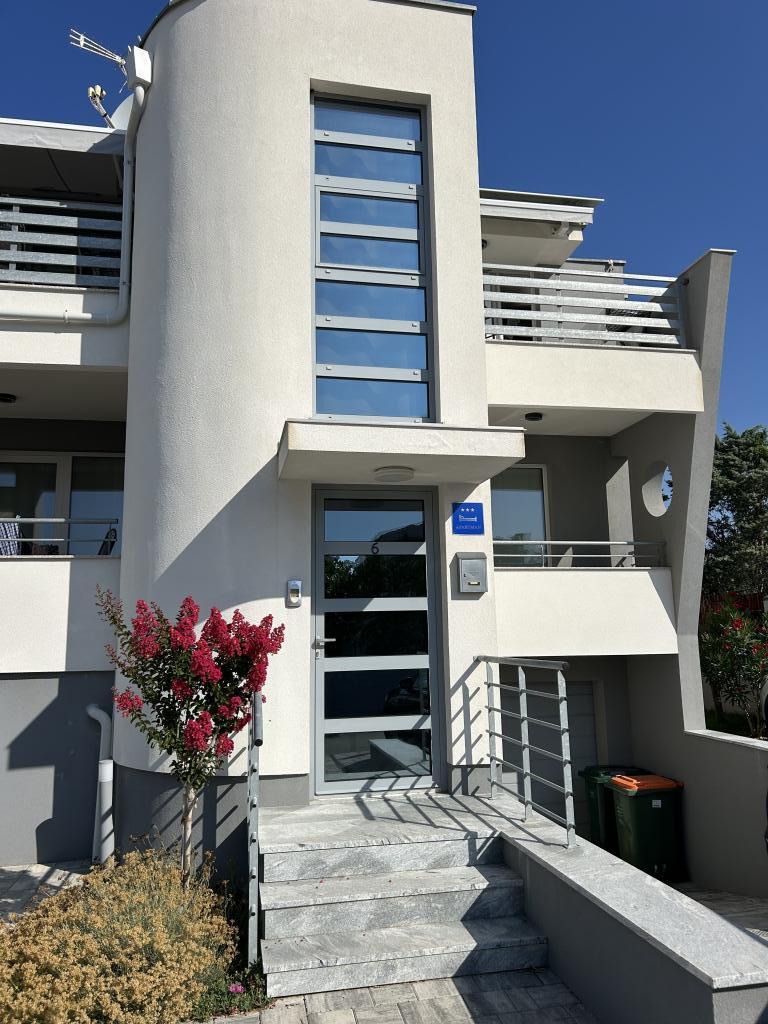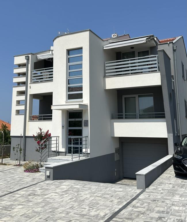 Das Familienhaus befindet sich im schönen, ruhigen Dorf Vrsi Mulo, das 20 km von Zadar und 5 km von der Königsstadt Nin entfernt ist. Von Zagreb sind es etwa 2,5 Autostunden. Zu vermieten sind zwei Wohnungen, welche sich im ersten Obergeschoss des Hauses befinden. Jede Wohnung verfügt über Meerblick, Geschirrspüler, Waschmaschine, zwei Balkone, privaten Parkplatz vor dem Haus, WLAN, Klimaanlage, … Der Kieselstrand Mulo ist nur 200 m die Straße hinunter, der Strand verfügt über Einrichtungen für Kinder und Erwachsene (Kinderpark, Café-Bars, Beachvolleyball, Restaurants, Verleih von Sonnenschirmen und Liegestühlen, Tretbooten, Jetskis, …). In der Nähe befinden sich auch weitere Strände (Sand-, Fels- und Kiesstrände): der Sandstrand Ričina (zwei Strandbars, Volleyball im seichten Wasser, ...), der idyllische Kieselstrand Duboka Draga, umgeben von Felsen, von denen junge Leute gerne ins kristallklare Meer springen, ein großer Kiefernwald mit Promenade und Strände am Meer mit natürlichem Schatten für alle, die Ruhe, Stille und unberührte Natur lieben. Geschäfte, Metzgerei, Bäckerei, Markt, … weniger als 5 Gehminuten entfernt.
