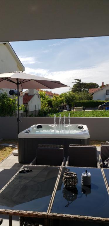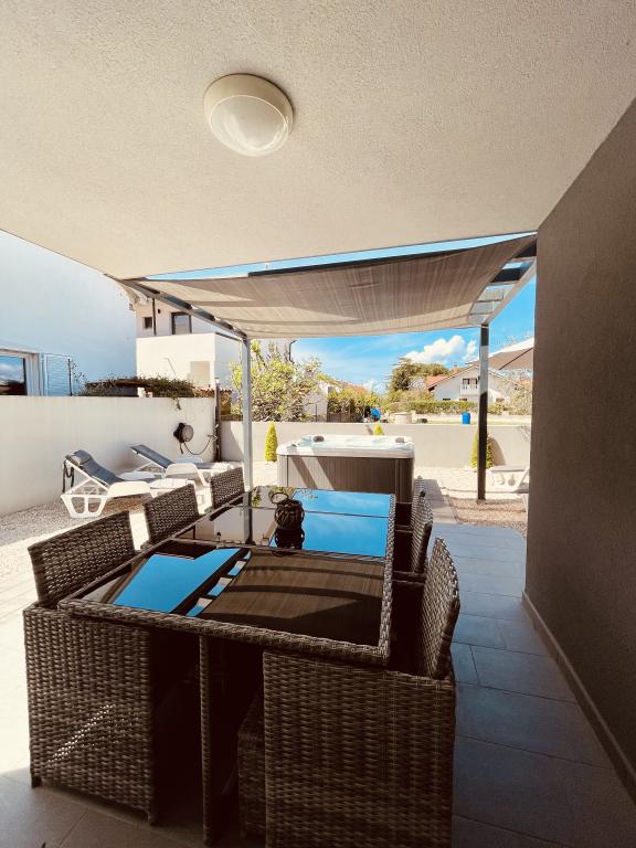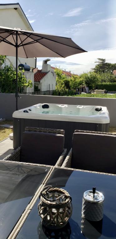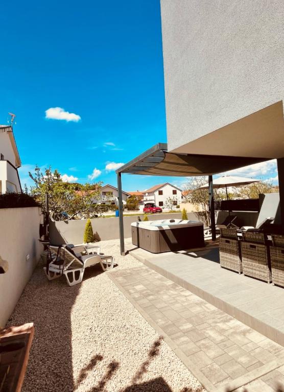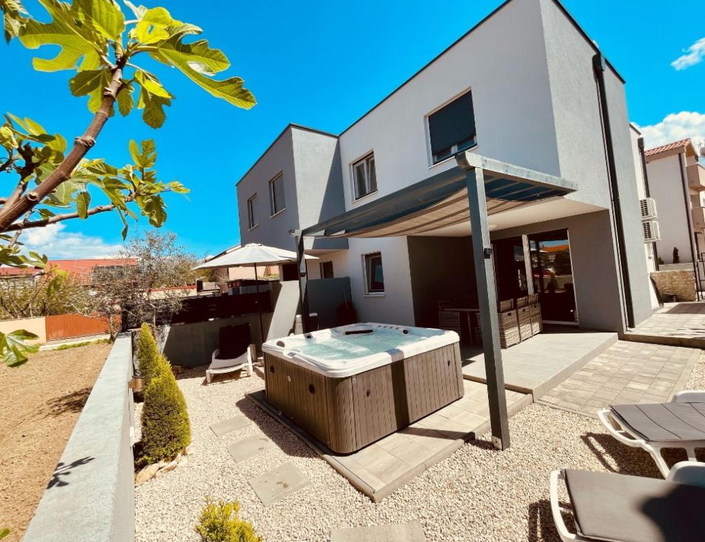 Willkommen bei LP Apartment Kroatien! Wir vermieten eine Doppelhaushälfte für bis zu 8 Personen, mit großem Whirlpool in Vrsi / Zukve. Das Haus ist nur 150 m vom Meer entfernt.