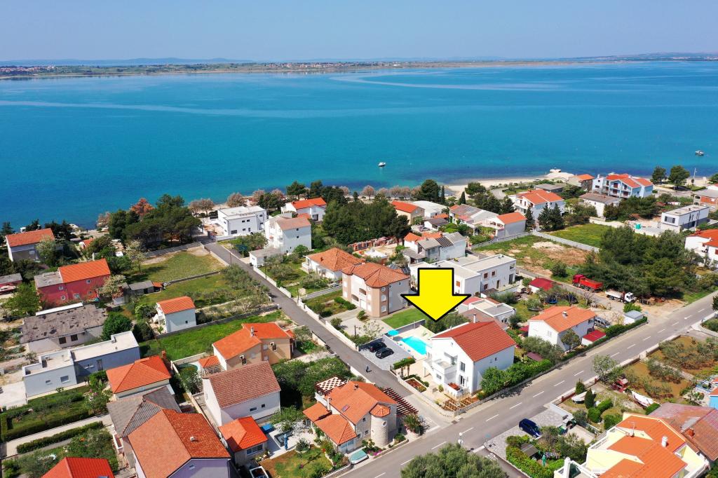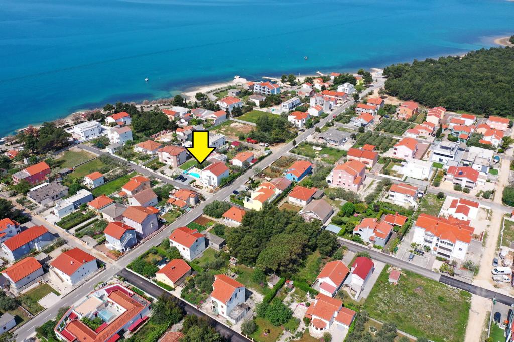 Unser Haus liegt in einer sehr schönen und besonders ruhigen Gegend im malerischen Städtchen Vrsi. Wunderschöne Landschaft, wunderschöne Natur, interessante Kultur und gesundes Klima sind die Merkmale, die uns von anderen Orten unterscheiden. Der Hauptstrand liegt ganz in der Nähe unseres Hauses und ist mit einem kurzen Spaziergang (80 Meter oder 2 Minuten Fußweg) erreichbar. Die Ferienwohnung „Anka“ ist für Familien mit zwei Kindern gedacht und verfügt über einen kleinen Olivenhain, der an heißen Sommertagen angenehmen Schatten spendet, sowie eine große Liegewiese. Der große beheizte/gekühlte Swimmingpool liegt nur wenige Schritte von der Wohnung entfernt und bietet unvergessliche Freuden für die ganze Familie.