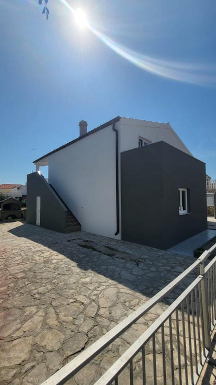 Wohnungen im Obergeschoss des Hauses Wohnzimmer mit 2 Schlafsofas 2 Schlafzimmer mit einem Doppelbett und einem Bett für eine Person Dusche und WC, Waschmaschine Die Küche ist komplett eingerichtet Das Haus ist 50 m vom Strand entfernt, der Strand besteht aus feinen Kieselsteinen , was den Laden betrifft, ist alles vorhanden, Bäcker, Supermarkt, Pizzeria,... Die nächste größere Stadt ist 20 km von Zadar entfernt, Nin ca. 4 km. Bei Interesse oder weiteren Fragen kontaktieren Sie uns bitte