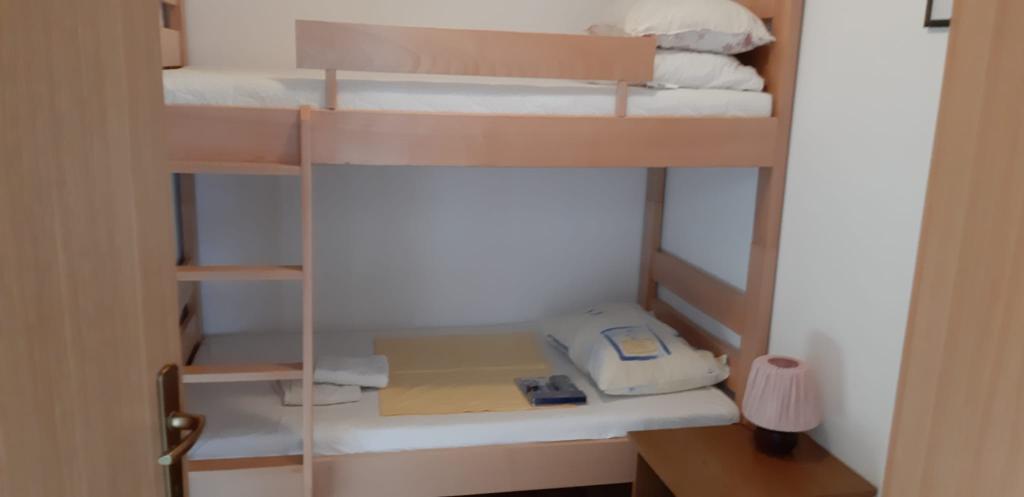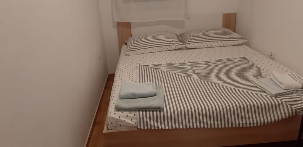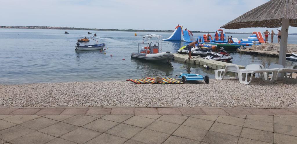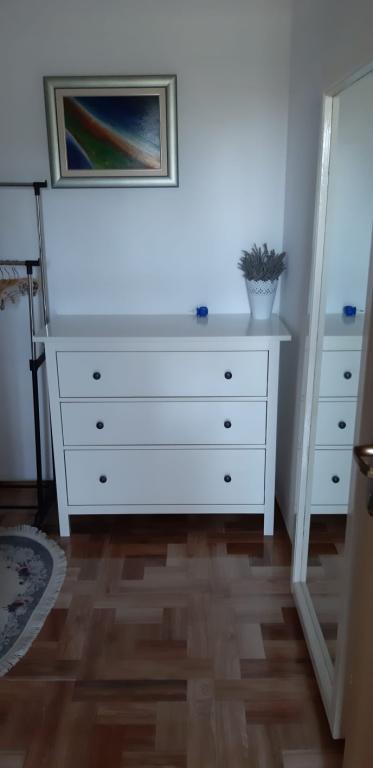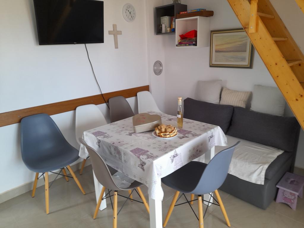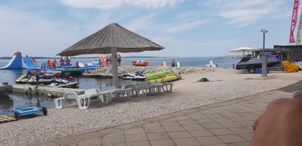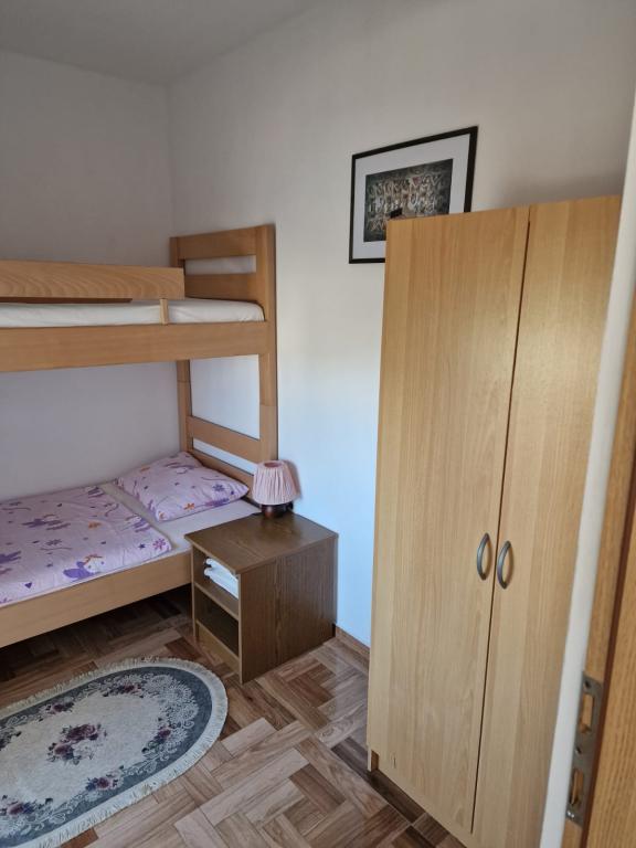 Das Apartment „Idi pa Vidi“ befindet sich in Vrsi, in der Nähe von Nin (4 km entfernt), und ist 23 km von Zadar entfernt. Von Zagreb aus erreichen Sie uns in 2,5 Stunden mit dem Auto. Wir bieten zwei Apartments mit separaten Eingängen. Die Gemeinde Vrsi verfügt über 14 Strände, der nächste Strand ist nur 320 m vom Apartment entfernt. Die Strände in Vrsi sind überwiegend sandig und kiesig (der bekannteste Strand liegt in der Nähe von Ričin). In fußläufiger Entfernung finden Sie einen Supermarkt, einen Wochenmarkt, eine Bäckerei, Restaurants, eine Metzgerei und einen Freizeitpark. Das Haus liegt in einer Sackgasse und verfügt über einen gepflegten Garten mit Rasenfläche. Eine Außendusche und ein Grillplatz stehen den Gästen zur Verfügung. Das Apartment im ersten Stock bietet ein Wohnzimmer mit Terrasse und Meerblick und erstreckt sich über zwei Ebenen. Die erste Etage verfügt über zwei Schlafzimmer (eines mit Doppelbett, das zweite mit Balkon und Etagenbett) sowie ein Badezimmer. Das dritte Schlafzimmer (mit WC) befindet sich auf der Galerie der Wohnung. Die Wohnung bietet Platz für maximal sieben Personen.