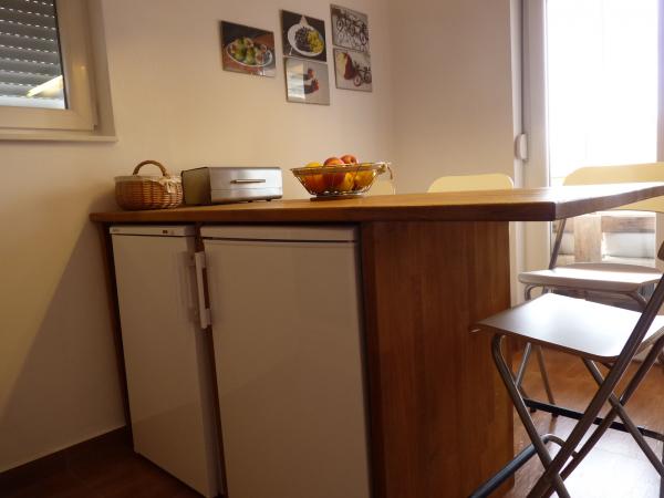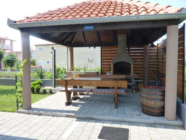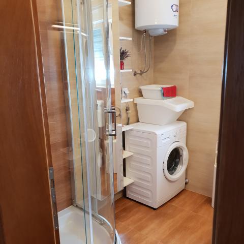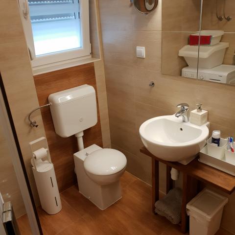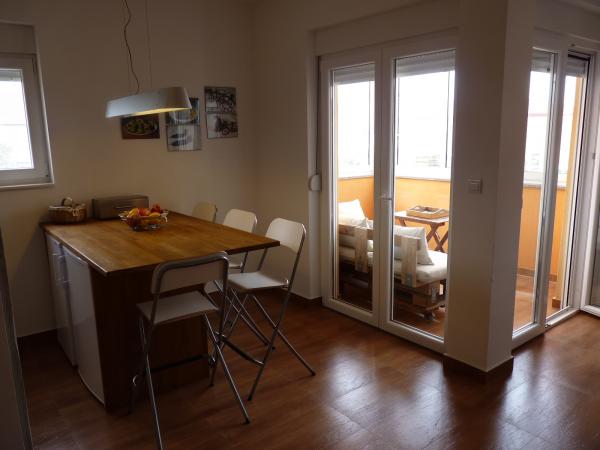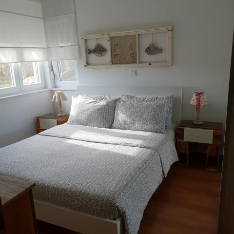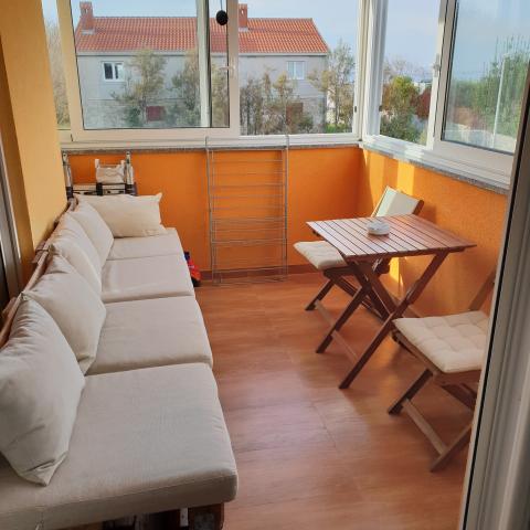 Neu gebaute Wohnung in ruhiger Lage, komplett ausgestattet mit Meerblick. Ein Sandstrand, ideal für Kinder, nur 50 m von der Wohnung entfernt und das Zentrum von Nin 15 Gehminuten entfernt. Gesicherter Parkplatz im umzäunten Hof. Die Wohnung besteht aus einem Schlafzimmer, einem Wohnzimmer mit einem Zustellbett für zwei Personen, einer Küche mit Essbereich, einem Badezimmer und einem Balkon. Es gibt auch einen überdachten Grill mit Holzbänken und einem Tisch.