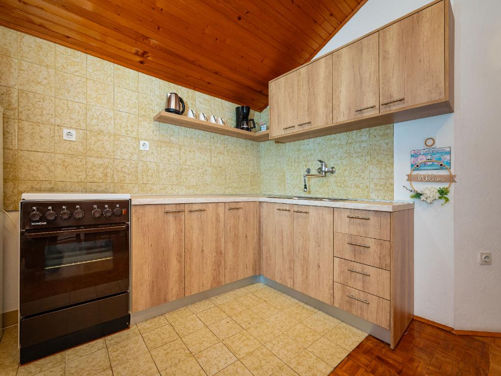 Die Wohnung ist wie beschrieben. Gut ausgestattet, geräumig und sauber. Günstig gelegen. Die Küche bietet Meer- und Bergblick. In der Nähe befinden sich zwei große Supermärkte (Konzum, Tommy) und eine Bäckerei. Sehr nette Besitzer.