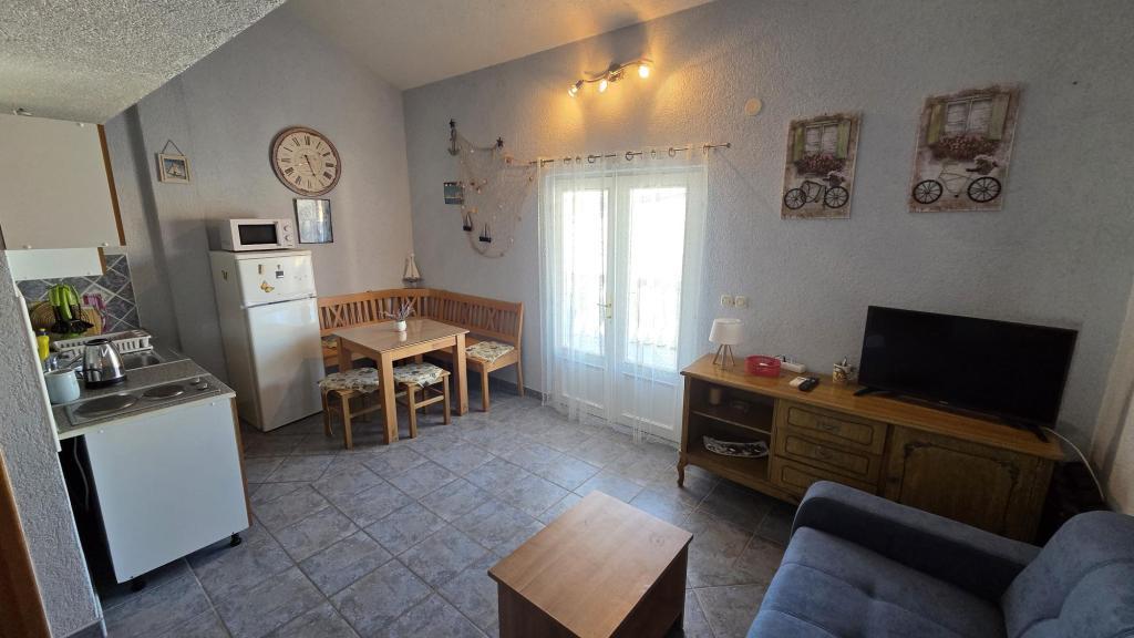 Die Wohnung besteht aus zwei Zimmern (eines mit Doppelbett, das andere mit zwei Einzelbetten), einem Badezimmer, einem Wohnzimmer mit Küche und einer großen Terrasse. Parkplätze befinden sich direkt neben der Wohnung. Zur Ausstattung gehören außerdem ein Grill, Klimaanlage und WLAN. Das Meer ist in 5 Minuten bequem zu Fuß erreichbar, das Stadtzentrum mit seinen Geschäften in 10 Minuten. Ein wunderschöner Pinienwald liegt in unmittelbarer Nähe. Die Lage ist ruhig und friedlich.