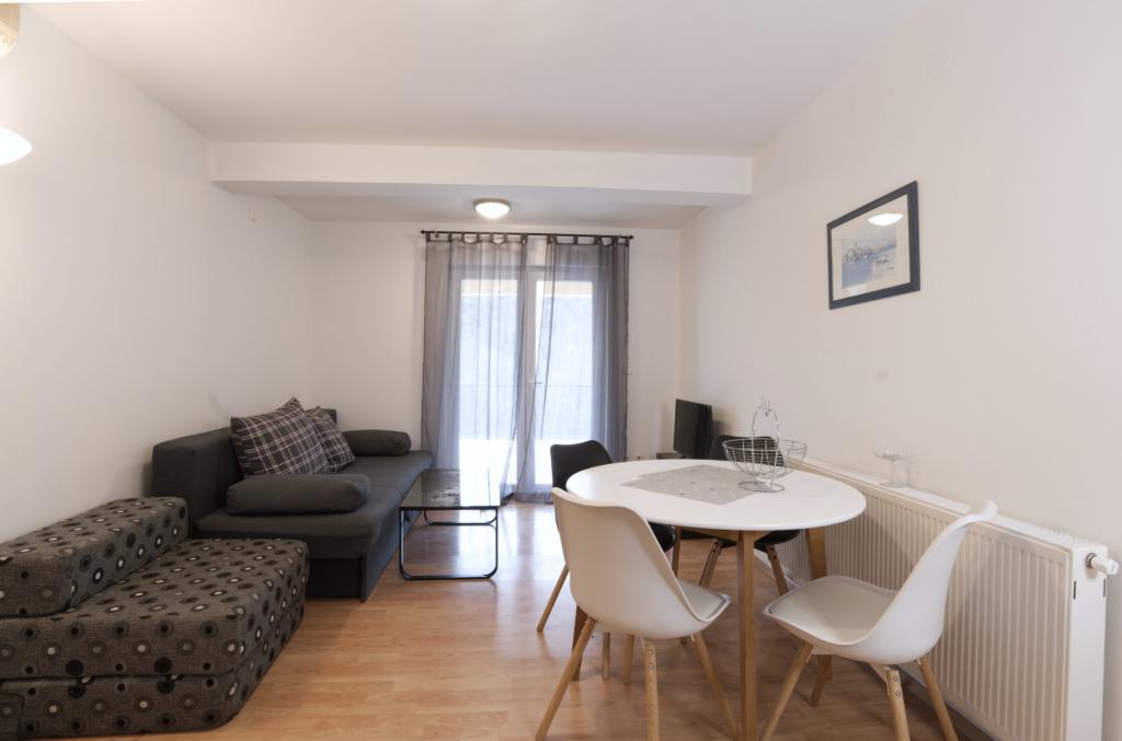 Die Wohnung verfügt über ein Schlafzimmer und im Wohnzimmer gibt es ein Zustellbett. Eine große Terrasse mit Blick auf die Bäume – diese bietet genügend Platz und Leinen zum Aufhängen von Handtüchern und Badeanzügen, und der vom Schlafzimmer aus zur Straße gerichtete Balkon war auch praktisch. Der Strand und die Stadt Njivice liegen 6 Gehminuten entfernt. Der Parkplatz befindet sich direkt neben dem Eingang zur Wohnung. Die Gastgeber waren freundlich, flexibel und hilfsbereit. Top Lage und tolle Wohnung.