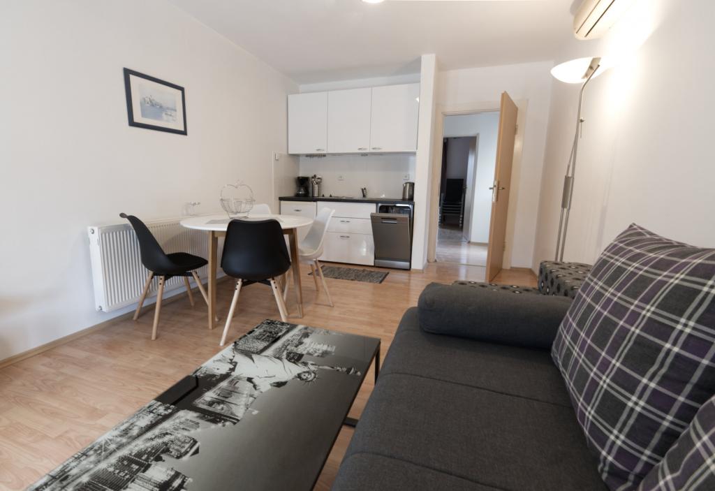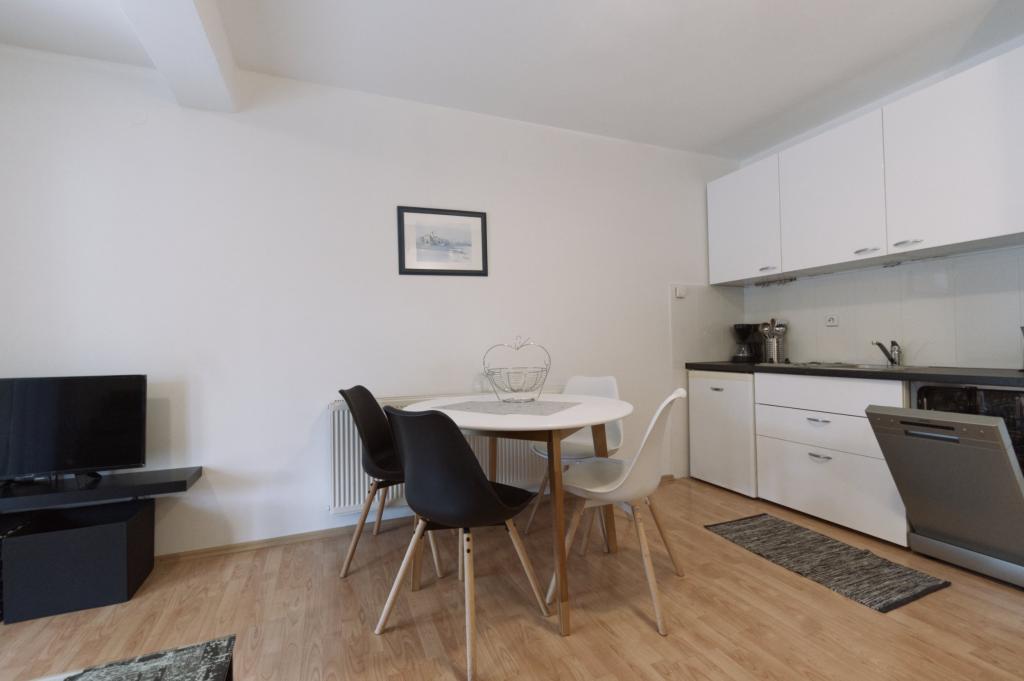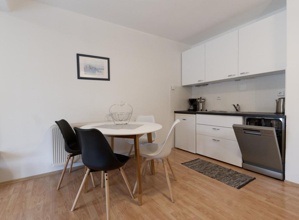 Die modernen Apartments befinden sich im kleinen Fischerdorf Njivice auf der Insel Krk. Njivice ist nur 11 km vom Flughafen Rijeka entfernt. Die Anlage liegt 3 Gehminuten vom Stadtzentrum und wunderschönen Kiesstränden entfernt, wo Sie sich entspannen und Sonne und Meer genießen können. Der Ort ist ideal für Familien mit kleinen Kindern und Menschen, die die frische Luft genießen möchten. Die Apartments bestehen aus einem Schlafzimmer, einem Badezimmer, einem geräumigen Wohnzimmer mit Küche und Esszimmer, einem Balkon und einer schönen großen Terrasse, die sich ideal für den Morgenkaffee sowie zum abendlichen Genießen eignet, während die frische Luft vom Wald weht. Dank der Schlafcouch im Wohnzimmer besteht die Möglichkeit, zwei weitere Personen unterzubringen. Das Studio besteht aus einem Wohnzimmer mit Bett, einem Esszimmer und einer separaten Küche, einem separaten Badezimmer und einer kleinen überdachten Terrasse vor dem Eingang (20 m²).
