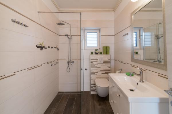 Unser Haus verfügt über 2 komfortable Apartments, Marija 1 und Marija 2. Die Apartments befinden sich auf einer eigenen Etage, sind vollständig voneinander getrennt und verfügen über separate Parkplätze, Terrassen und jeweils einen eigenen Grillplatz, sodass unsere Gäste das Gefühl haben, zu bleiben im Haus, nicht in der Wohnung. Das Apartment Marija 1 ist ein älteres Apartment und in einem traditionellen, aber sehr funktionalen Stil eingerichtet. Unseren Gästen stehen 90 Quadratmeter Wohnfläche inklusive Balkon und Terrasse zur Verfügung und wir bieten bequem Platz für sechs Personen. Wir sind besonders stolz auf den Grillplatz, den die Gäste dieser Wohnung nutzen. Die Wohnung verfügt über zwei Parkplätze im Hof - Apartment Marija 2 ist etwas neuer mit einer großen Terrasse, Grill auf der Terrasse und einem schönen Meerblick. Unseren Gästen stehen ca. 95 qm Wohnfläche inklusive Balkon und Terrasse zur Verfügung, wir können bequem 6 Personen unterbringen. Die Wohnung verfügt über einen eigenen Parkplatz neben der Terrasse der Wohnung. Willkommen in der Villa Marija!
