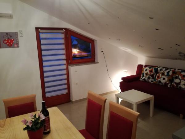 Sehr angenehme Frau Zlata. Die Wohnung ist sehr gut erhalten und gemütlich mit Meerblick. Es liegt in der Nähe des Strandes, aber wegen des Hügels ist es besser, mit dem Auto zu fahren. Njivice hat eine schöne Lage, es gibt Geschäfte und Restaurants in der Nähe