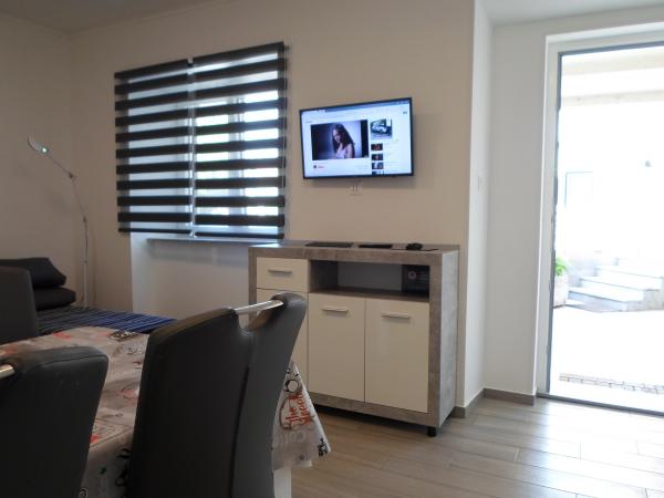 Die bisher schönste Wohnung, modern eingerichtet, mit zwei Schlafzimmern (große, bequeme Betten und große Schränke, bequeme Yogis), dem Badezimmer mit Waschmaschine, der Küche mit viel Ausstattung (fast mehr als zu Hause) und einem Geschirrspüler. Alle Reiniger neben dem Geschirr, der Spülmaschine und der Waschmaschine. Besitzer super freundlich - kaufte ein Geschenk für einen Sohn, der in jenen Tagen Geburtstag hatte. Die Wohnung ist ein paar Schritte vom schönen Strand entfernt, aber nur so weit weg, dass kein Trubel aufkommt. auf die Terrasse gebracht. 5 Minuten entfernt sind Restaurants, Konditoreien mit bestem Eis, Verkaufsstände, nicht dass es keine ... (Njivice) sind das Gesetz - wir empfehlen :)