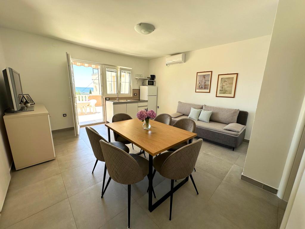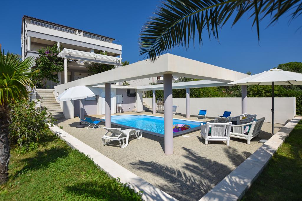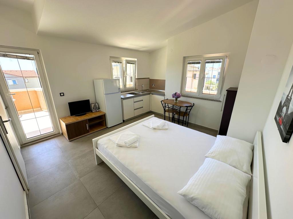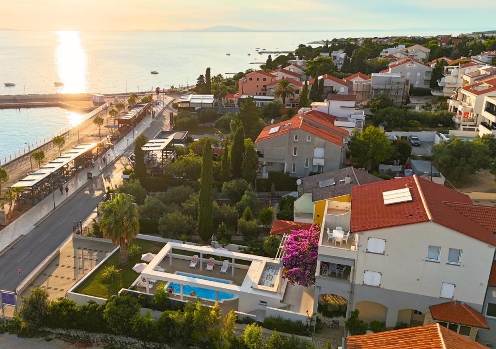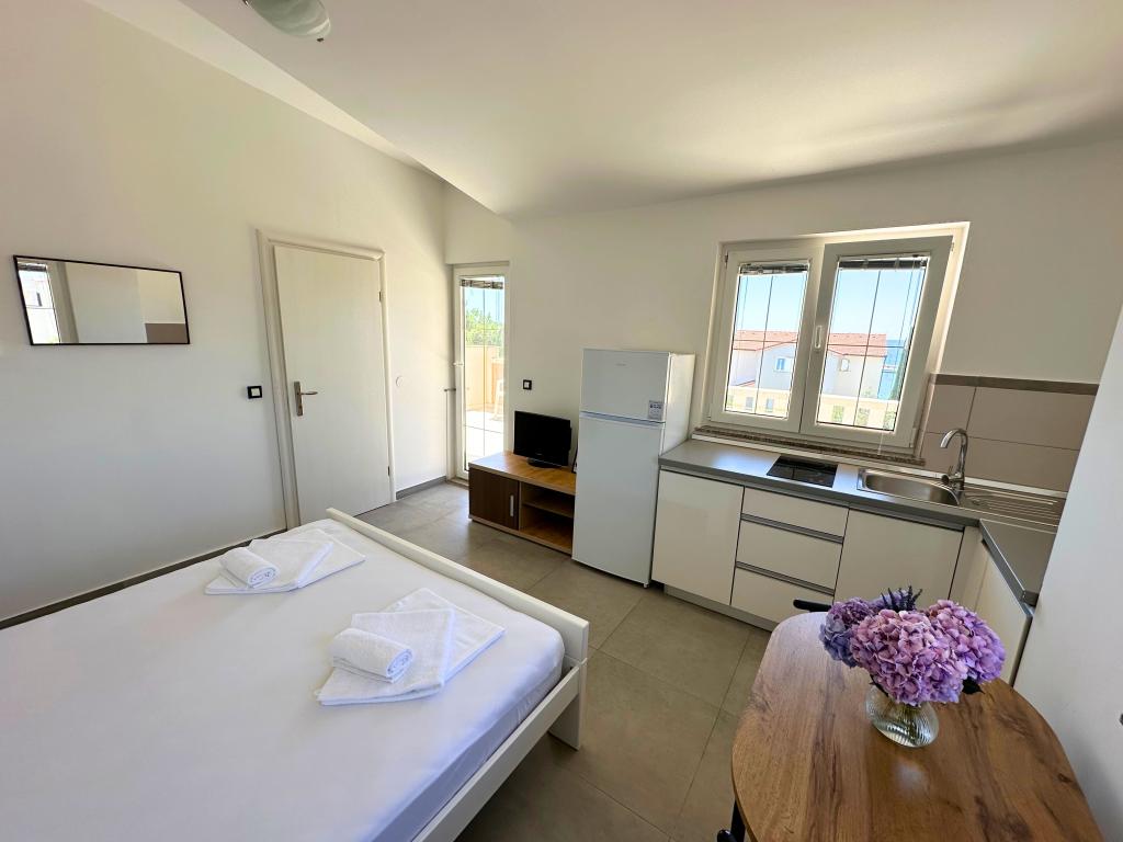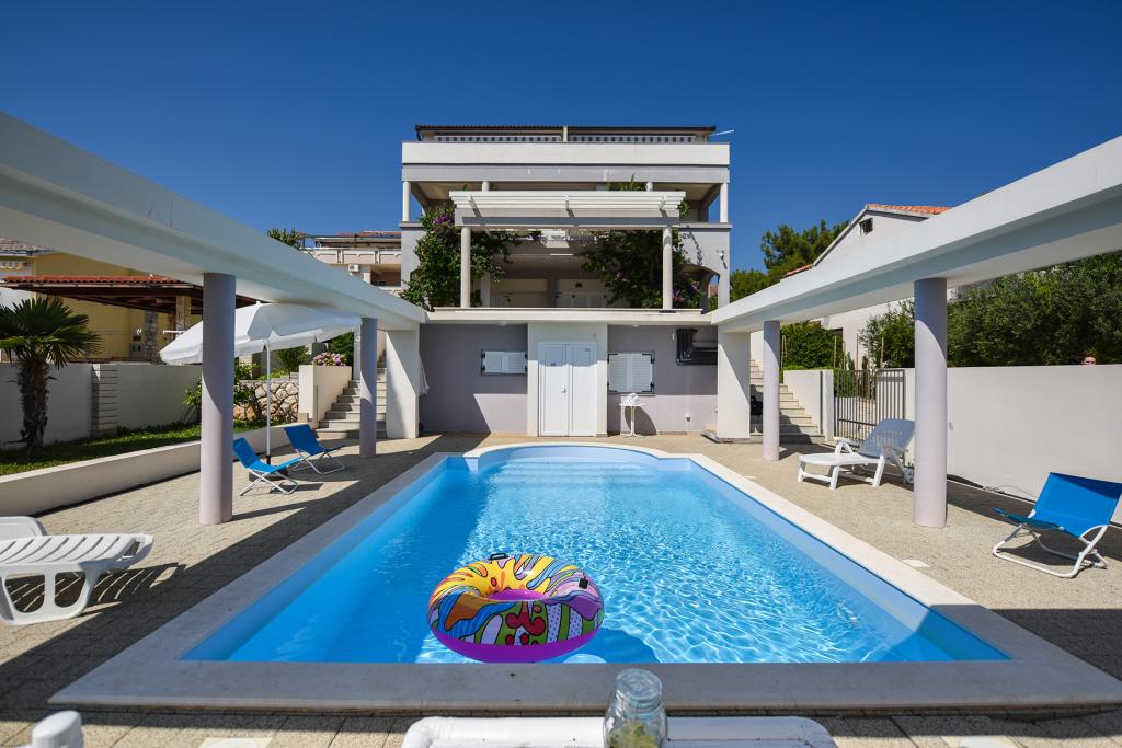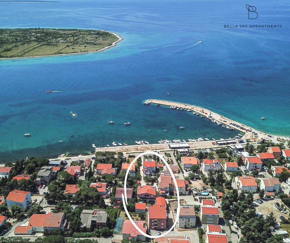 Die Bella Sky Apartments liegen nicht weit vom Zentrum von Novalja entfernt und bestehen aus 5 Häusern mit insgesamt 29 Apartments. Das erste Haus liegt direkt am Meer, während die anderen Häuser in einer Reihe hinter dem ersten Haus liegen. Die Apartments haben eine Kapazität für 2-6 Personen und sind standardmäßig ausgestattet, mit Blick auf das Meer, kostenlosen Parkplätzen, einem Swimmingpool und einem Raum für geselliges Beisammensein und einem Grill im Hof. In der Nähe der Wohnung gibt es zahlreiche Restaurants und Cafés sowie Strände mit zahlreichen Zusatzaktivitäten.