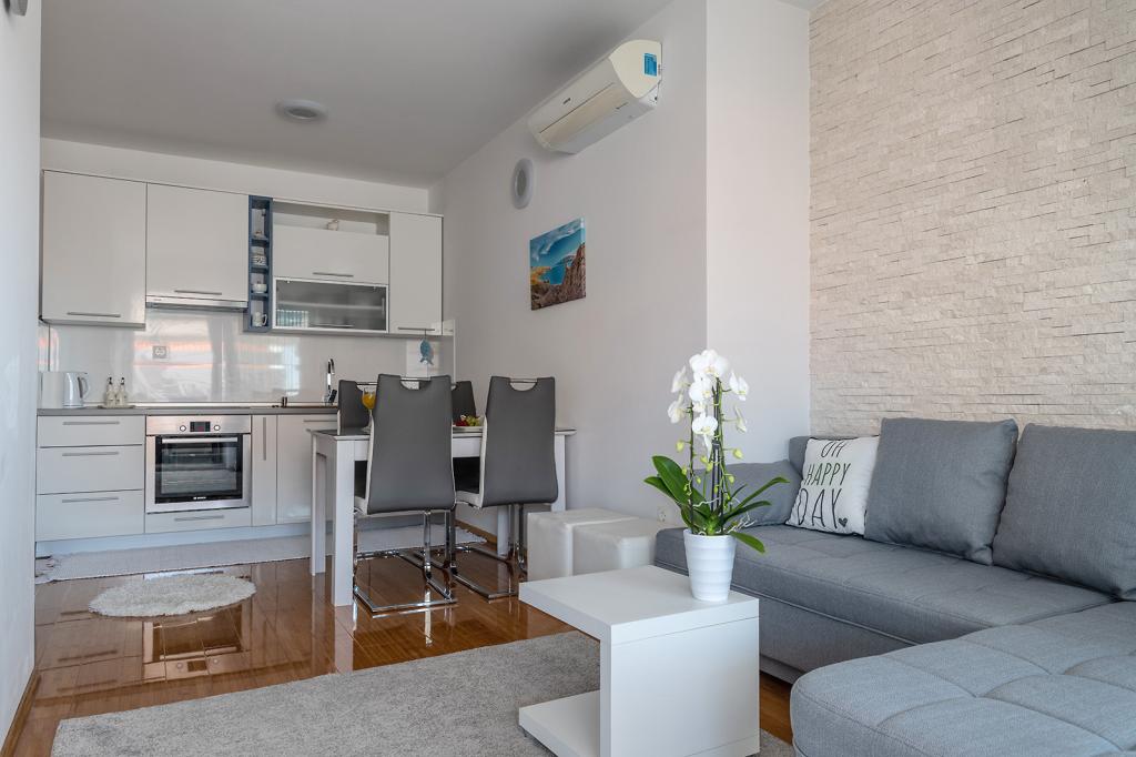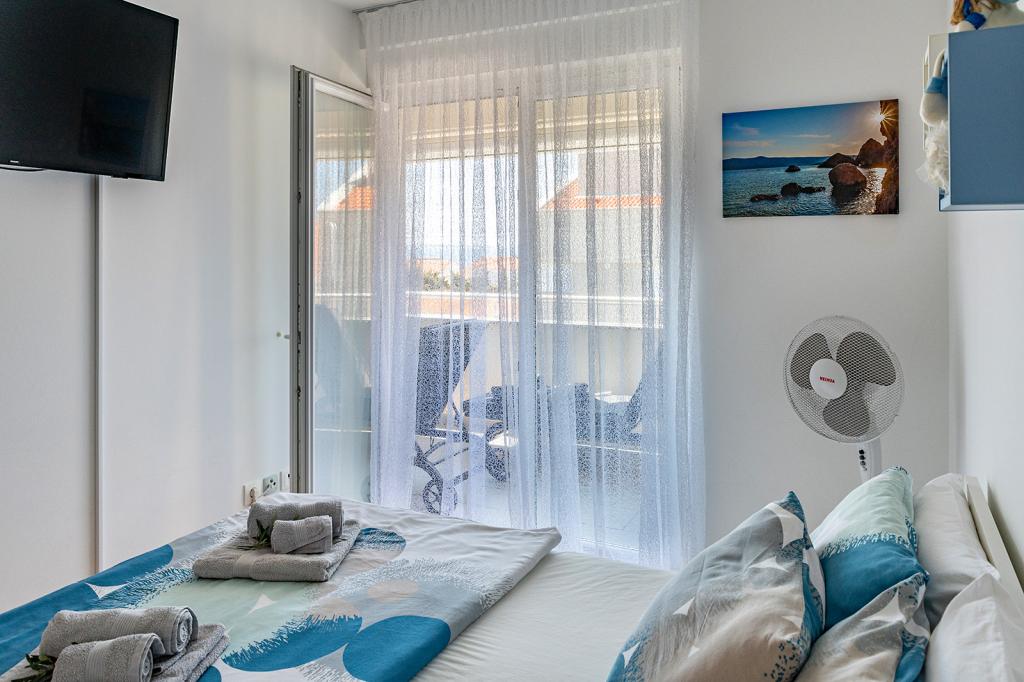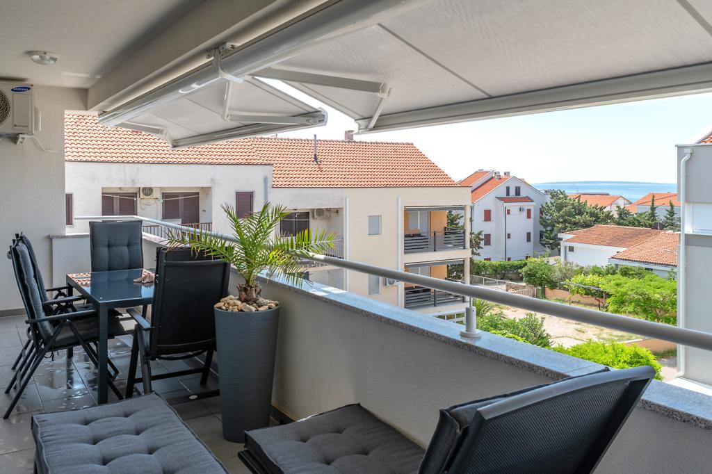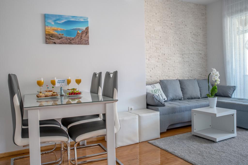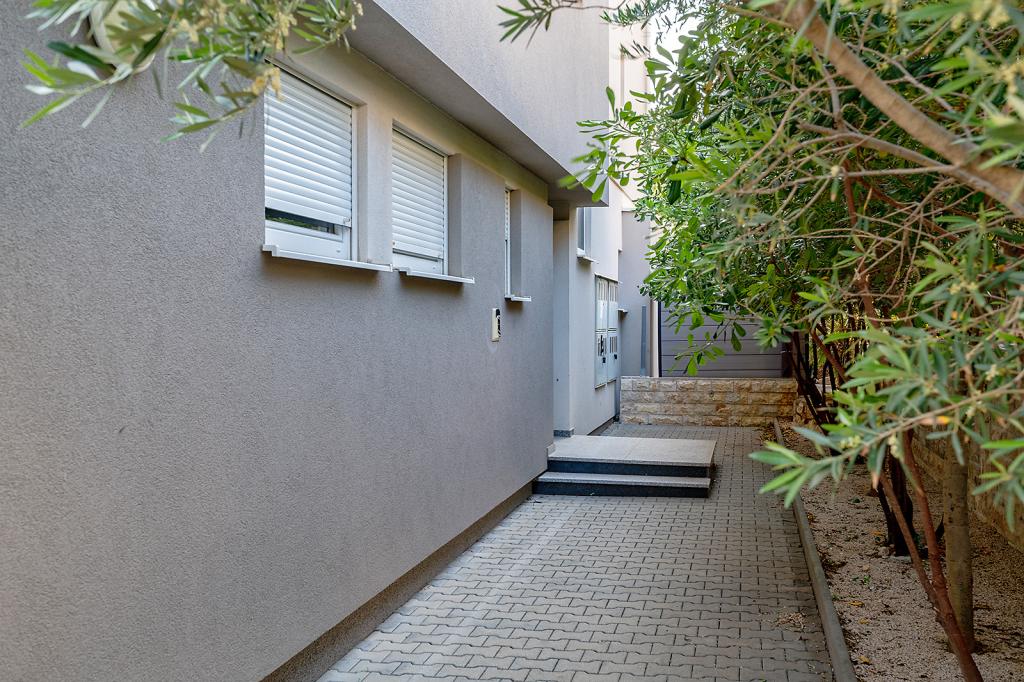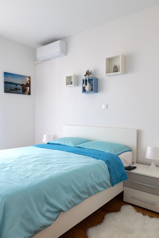 Wir befinden uns in einer großartigen Lage in Novalja, in der Primorska-Straße, 150 m von einem Sandstrand mit kristallklarem Meer und 15 Minuten zu Fuß am Meer entlang entlang der Promenade bis zum Zentrum von Novalja/Riva mit zahlreichen Bars und Spielplätzen für Kinder. 150 m zum Sandstrand von Ploče, 8 Gehminuten zum Strand von Babe. Beide Strände sind für Kinder geeignet. Weitere schöne Strände der Insel sind nur wenige Autominuten entfernt. Die Wohnung verfügt über 2 Schlafzimmer, eine Küche mit Esszimmer und Wohnzimmer, ein Badezimmer, eine Eingangshalle, eine große Terrasse mit Meerblick und einen Parkplatz. Alle drei Zimmer haben Zugang zur Terrasse. Voll ausgestattet für einen komfortablen Aufenthalt: 2 Klimaanlagen, WLAN, Glaskeramikkochfeld, Backofen, Kühlschrank mit Gefrierfach, Mikrowelle, Geschirrspüler, Waschmaschine, 2 Fernseher, Bettwäsche, Handtücher, Küchentücher, Wasserkocher, Elektrogrill, Toaster , Haartrockner, 2 bequeme Liegestühle auf der Terrasse, Sonnenschirm... Die Wohnung ist nicht für Haustiere geeignet. Willkommen!