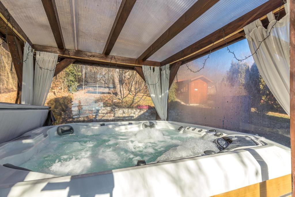 Das Pool House Milk And Honey - Happy Rentals befindet sich in Novi Marof und bietet klimatisierte Unterkünfte mit einer Terrasse und kostenfreiem WLAN. Dieses Ferienhaus verfügt über einen privaten Pool, einen Garten und kostenfreie Privatparkplätze. Dieses Ferienhaus verfügt über eine Spielekonsole, eine Küche mit Kühlschrank, Geschirrspüler und Backofen, ein Wohnzimmer mit Sitzecke und Essbereich, 4 Schlafzimmer und 2 Badezimmer mit Dusche und Badewanne. Handtücher und Bettwäsche sind im Ferienhaus inbegriffen