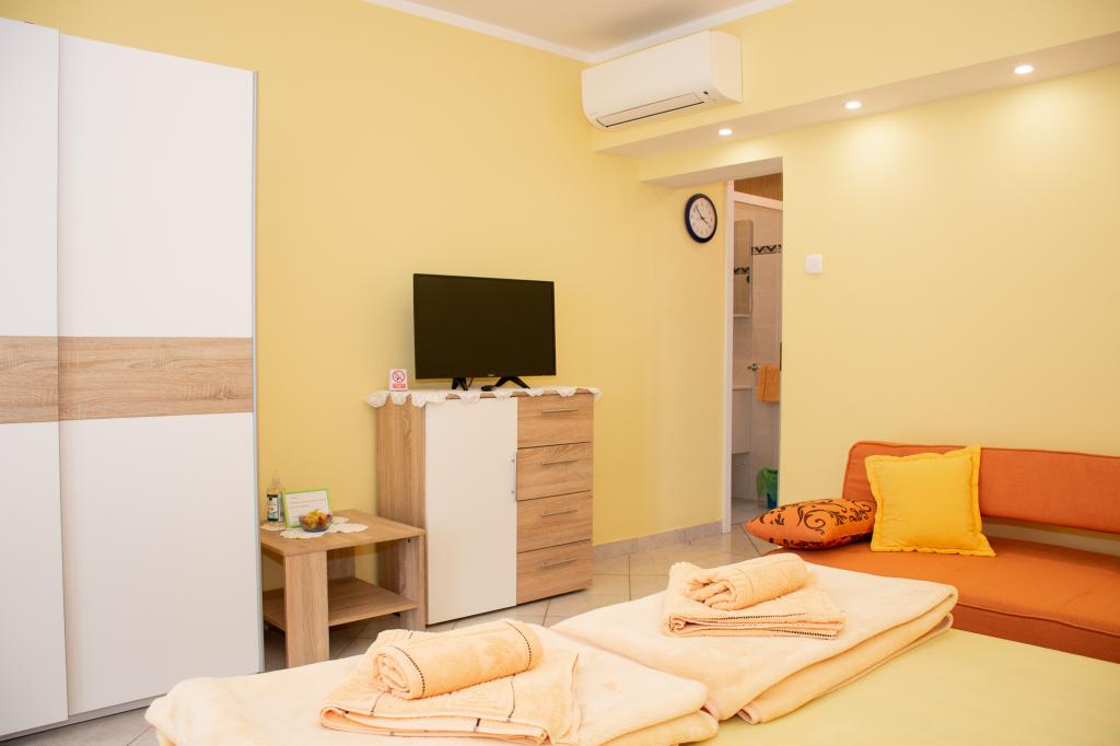 Liebe Besucher, in unserer Anlage bieten wir Ihnen zwei liebevoll eingerichtete Doppelappartements an. Die Anlage befindet sich in einem ruhigen Teil von Novi Vinodolski, nur wenige Gehminuten vom Stadtzentrum und dem Hauptstrand entfernt. Die Apartments bieten einen Blick auf das Meer oder die Altstadt. Die Klimaanlage ist nicht im Apartmentpreis inbegriffen und Sie müssen 8 Euro separat bezahlen, wenn Sie sie nutzen möchten. Mit der Zahlung einer Anzahlung von 30 % bestätigen Sie Ihre Reservierung. Wir hoffen, dass Sie unsere Apartments für Ihren Urlaub wählen. Danke.