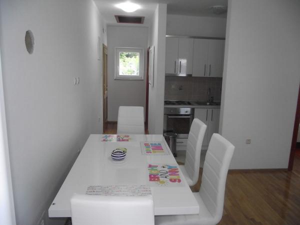 Wir bieten ein neu renoviertes Haus mit drei klimatisierten Apartments. Im Erdgeschoss befindet sich ein Apartment mit zwei Schlafzimmern, das Platz für bis zu 6 Personen bietet. Im Obergeschoss befinden sich zwei Apartments mit einem Schlafzimmer und jedes bietet Platz für 4 Personen. Im Hof gibt es einen Platz zum Sitzen und Geselligkeit und Grillen. Das Haus befindet sich am Eingang von Novi Vinodolski aus Richtung Rijeka und befindet sich ganz in der Nähe des Apartmentkomplexes Novi Resort. Es ist 200 Meter vom Meer und 200 Meter vom ersten Geschäft entfernt.