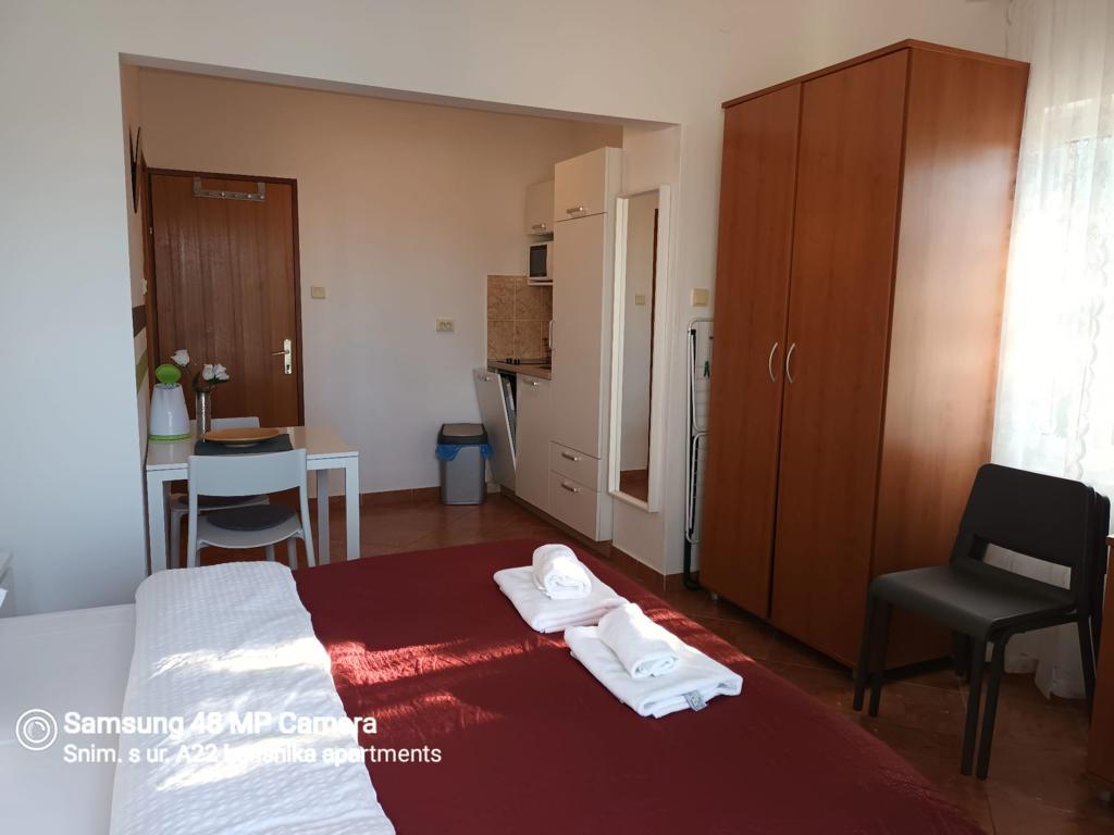 Neu renovierte und modern ausgestattete Apartments an der Straße in der Nähe des Meeres und hundert Meter vom Zentrum entfernt. Die Apartments verfügen über Balkone mit Meerblick. Die Apartments verfügen über Wi-Fi, Flachbildfernseher, Sat-TV, Inverter-Klimaanlage. Die Entfernung zum Strand beträgt 100 m und unterscheidet sich von Sand, Fels, Kies und Beton.