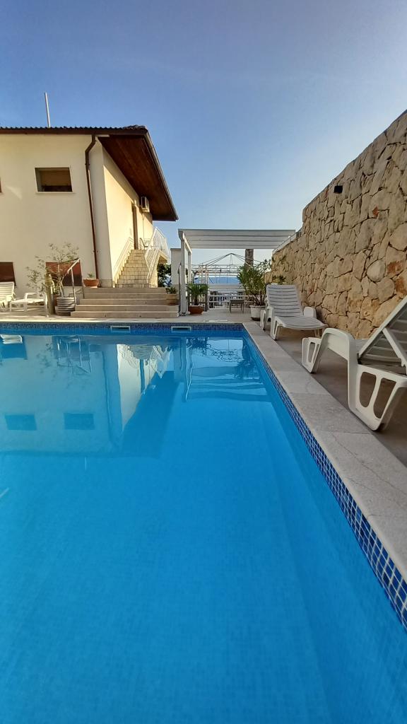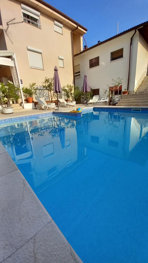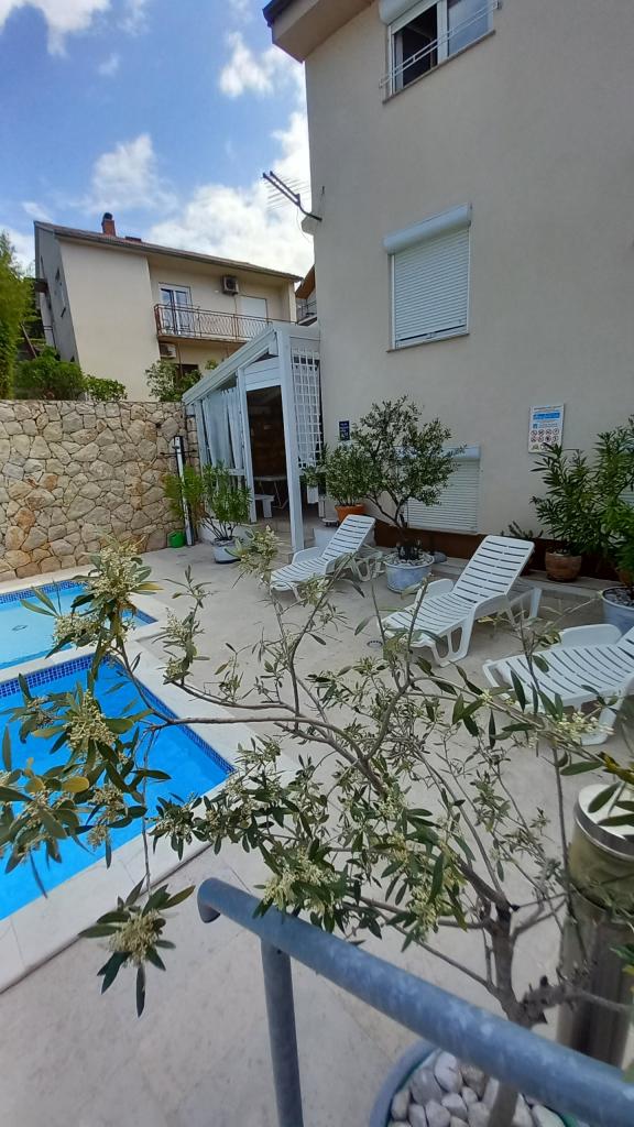 Familienapartments - ŠVOB - mit Swimmingpool; ideal für Familienurlaub mit Kindern und Enkelkindern (familienfreundlich). Wir akzeptieren keine Jugendgruppen. Schwimmen im Meer und Pool, Entspannung bei Massagen und Sauna. Die Apartments befinden sich in hervorragender Lage in Novi Vinodolski, ca. 350 m vom Strand (für Kinder und Erwachsene geeignet), dem Hotel Lišanj, dem Park, der Promenade am Meer und dem Stadtzentrum entfernt. Die Apartments sind komplett ausgestattet. Jedes Apartment verfügt über einen eigenen Eingang, Balkon oder Terrasse mit Meerblick, Garten und einen gemeinsamen Außenpool. *Wir haben vom 28.04. bis 15.10. geöffnet (saisonal). - Im Haus - mit Swimmingpool - bieten wir 5 Familienapartments (2 größere und 3 kleinere), Terrassen/Grill, 2 Außenduschen, WC. Parkplätze vor dem Haus (1 Parkplatz pro Apartment), WLAN. *Partys für Jugendliche sind nicht erlaubt! *Der Preis für die erste/letzte Buchung gilt für 2 Erwachsene + 2 Kinder