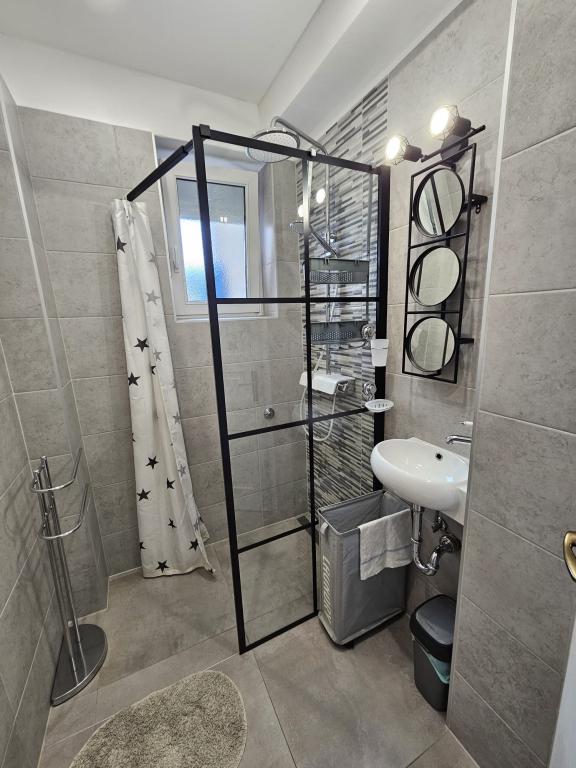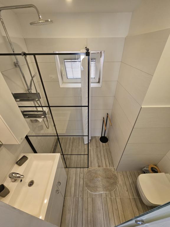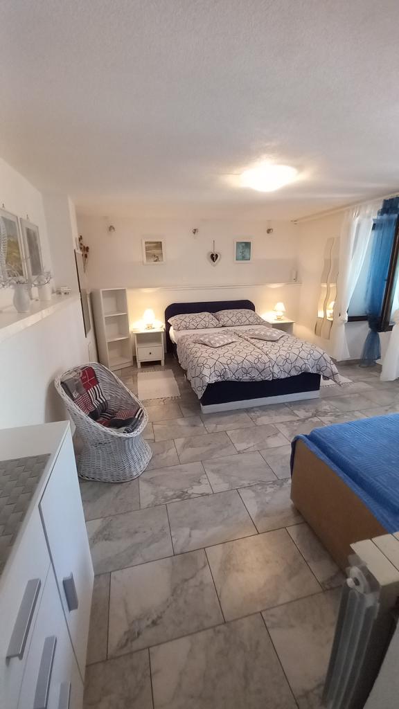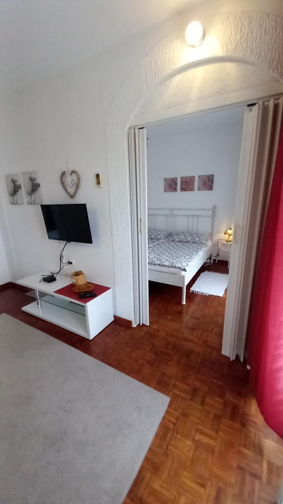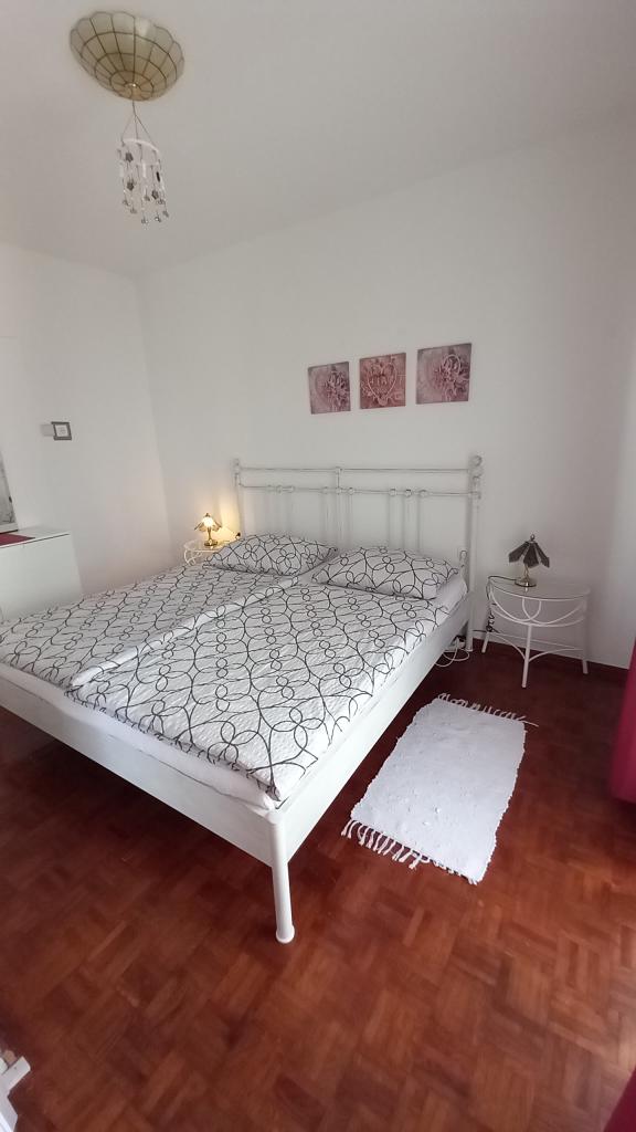 Ich vermisse diesen Aussicht , jetzt schon. !!! Die Wohnung ist gut bestückt, alles ist da bis auf Bügeleisen und Fön , das müsst ihr schon mitbringen. Alles ist mit Geschmack eingerichtet, modern und sauber. Ein Sternabzug , weil im Zimmer unter dem Dach Klimaanlage fehlt, Ventilator könnte der Hitze nicht standhalten. Die Frau Svob war sehr nett und hilfsbereit. Bis zum Strand war nicht weit . Und bis zu Stadtmitte, wo man abends viel Restaurants und Cafés sind auch nur 5 Minuten weit entfernt. Konsum Market und Bäckerei auch in der Stadtmitte. Lidl ist auch im Ort vorhanden . Parkplätze waren auch da. Alles in einem kann ich nur empfehlen!!! Schönen Gruß an Familie Svob!