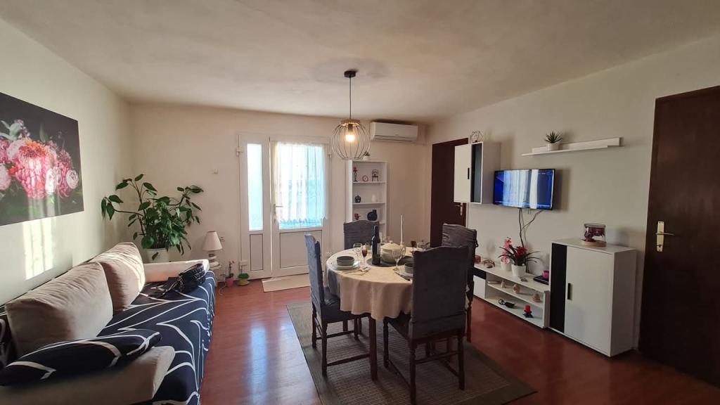 Ausgestattete Wohnung mit zwei großen Schlafzimmern, Küche, Wohnzimmer, Bad und einer schönen großen Terrasse mit Blick auf das Meer und die Innenstadt. Ausgestattet mit sämtlichen Haushaltsgeräten (Waschmaschine, Geschirrspüler, Mikrowelle, Toaster, Backofen, Wasserkocher, Elektrogrill). Parkplatz, Klimaanlage und WLAN sind im Preis inbegriffen. Das Apartment liegt 5 Minuten vom Stadtzentrum und 10 Minuten vom Hauptstrand entfernt.