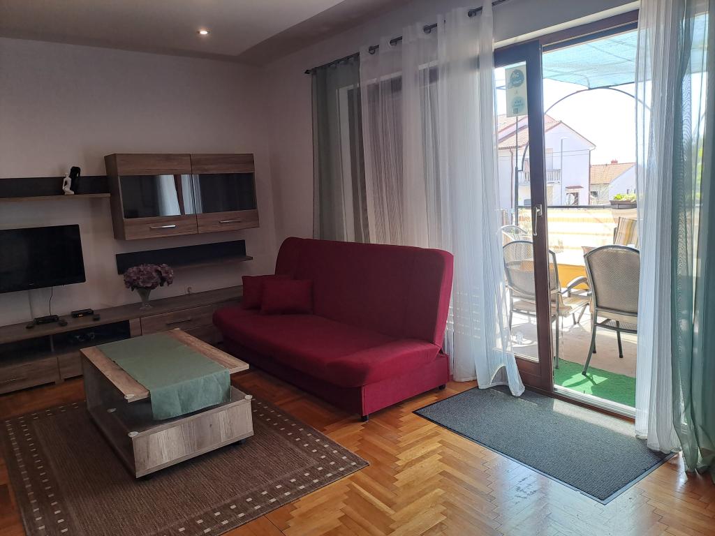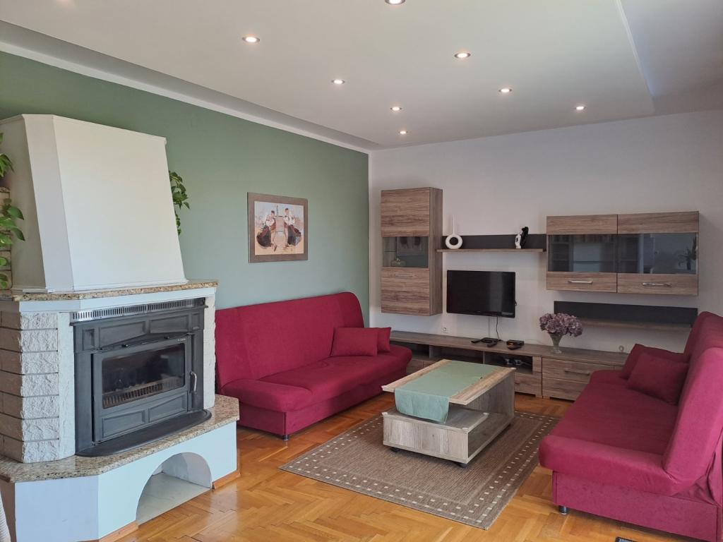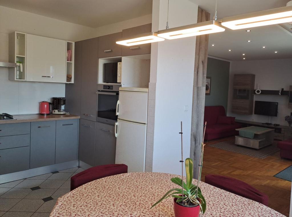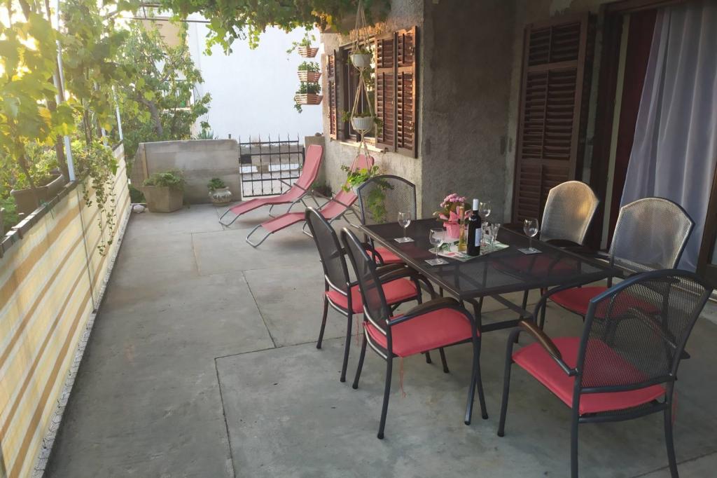 Die modern eingerichtete Haus mit einem mediterranen Garten und einem Garten, in einem ruhigen Teil von Novi Vinodolski. Die Wohnung befindet sich im ersten Stock befindet. Es hat eine große Terrasse mit Grill und Meerblick und Parkplätzen. Ein idealer Ort für einen Familienurlaub zu verbringen.