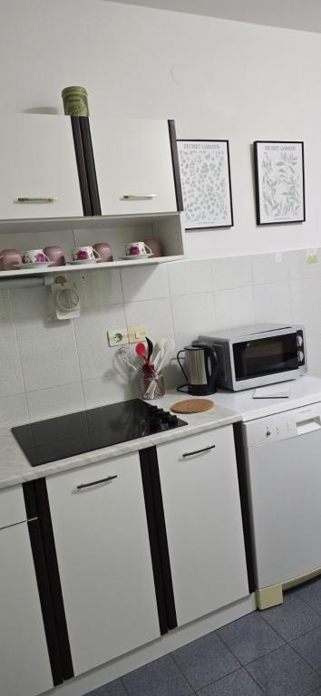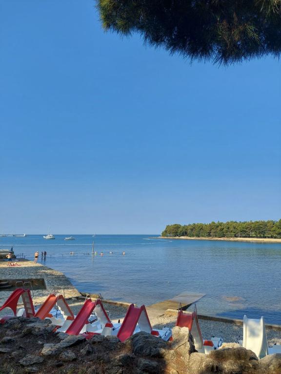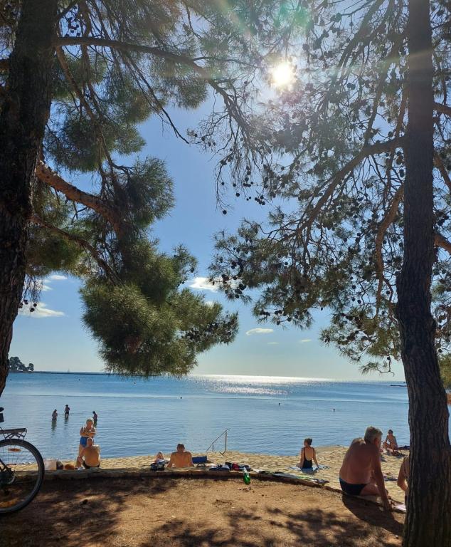 In unmittelbarer Strandnähe gelegen, lehnt sich das Marina-Haus an einen Pinienwald und eine malerische lange Promenade mit Blick auf das endlose Blau des Meeres. Sie führt in der einen Richtung zu ruhigen Stränden und versteckten Buchten und in der anderen durch den Yachthafen bis ins Stadtzentrum. Entlang der Promenade gibt es Restaurants, Cafés, einen Kinderpark, Sportplätze, Tennisplätze, einen Minigolfplatz, ein Fitnessstudio im Freien und einen Öko-Platz mit grüner Flagge. Der Duft von Pinien, Meer und Salz verleihen dem gesamten Ambiente eine angenehme und besondere Atmosphäre. Das Haus Marina ist der perfekte Ort für einen ruhigen Urlaub, auf Wunsch aber auch für einen aktiven Aufenthalt in der Natur. Das Innere des Hauses ist so gestaltet, dass es klassischen und modernen Stil vereint. Es geht darum, den Komfort im Schlafzimmer und anderen Räumen zu maximieren. Die Wohnungen sind komfortabel und mit modernen Geräten ausgestattet. Jede Wohnung verfügt über eine großzügige Terrasse, die zum Entspannen einlädt. Im Hof des Hauses gibt es einen Grillplatz und einen Parkplatz. Zum Strand sind es eine Minute zu Fuß und in die Innenstadt 10 Minuten, entlang der Promenade am Meer.