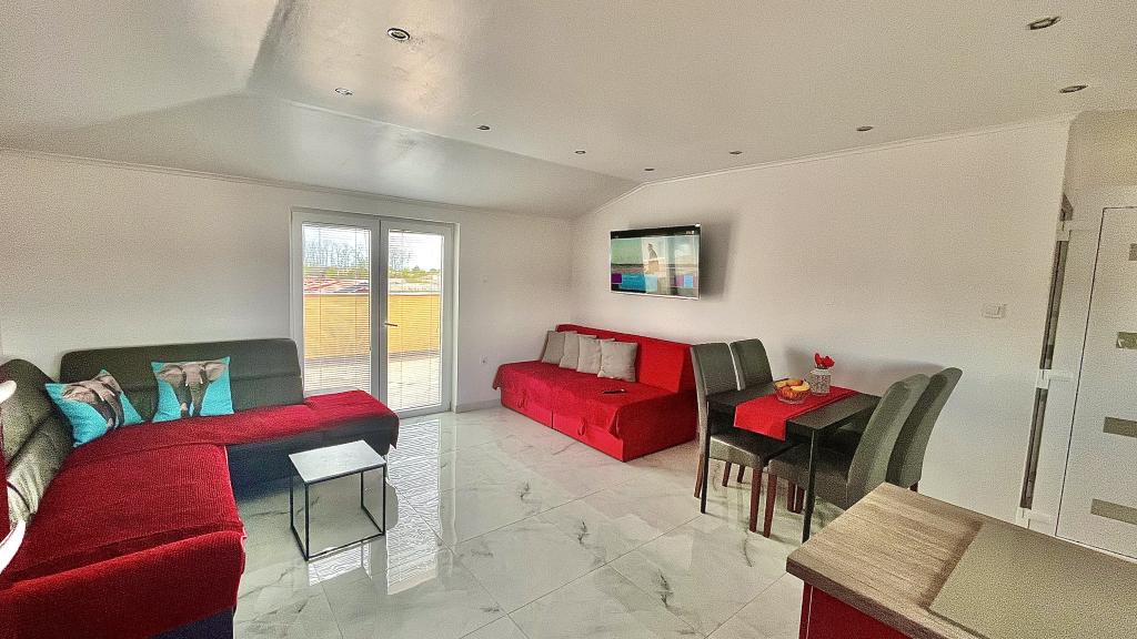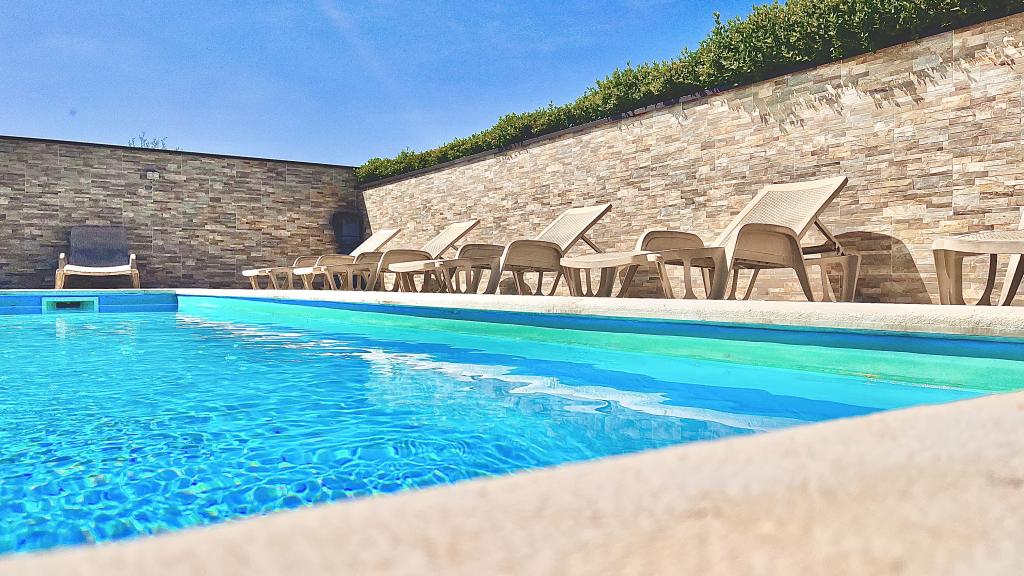 4 Wohnungen zur Miete in der Nähe von Novigrad. Entfernung vom Strand und dem Zentrum 1800m. Die Wohnungen sind neu, umgeben von Weinbergen und Natur. Vor dem Haus befindet sich ein Swimmingpool. WLAN, Klimaanlage, SAT-TV. 2 km entfernt liegt der größte Wasserpark Kroatiens, Istralandia. Ideal für Kinder und Junggebliebene.