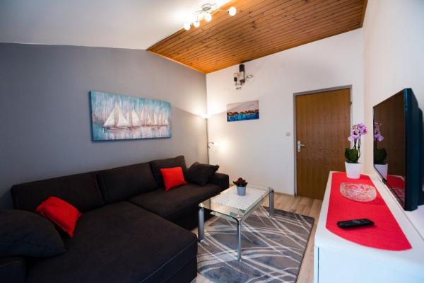 Wir hatten einen wunderschönen Urlaub in Kroatien. Die Wohnung liegt sehr ruhig und für Leute, die einfach nur entspannen wollen, perfekt. Ab und zu haben wir jedoch ein paar nahegelegene Ausgehmöglichkeiten wie zB Cafés oder Bars/Restaurants vermisst. Hierfür musste man immer entweder nach Okrug Gornji oder Trogir fahren. Toll war der nah gelegene Strand, wo wir uns oft aufgehalten haben. Die Wohnung an sich war einfach ausgestattet, relativ sauber und hatte alles was man braucht. Wir hätten uns hier und da mehr Ausstattung in der Küche gewünscht, d.h. mehr Geschirr, Besteck etc. Auch wäre ein Fernseher im Schlafzimmer schön gewesen. Aber man sollte bei diesem Preis auch nicht zu hohe Ansprüche stellen, vor allem weil man sich für gewöhnlich eher selten in der Wohnung aufhält, wenn man in Urlaub ist. Die Vermieter waren sehr nett und herzensgut. Sie haben immer sofort weiter geholfen, wenn man Fragen oder kleine Probleme hatte. Wir haben uns dort sehr gut aufgehoben gefühlt und können die Unterkunft durchaus weiterempfehlen.