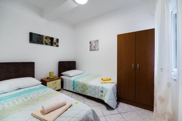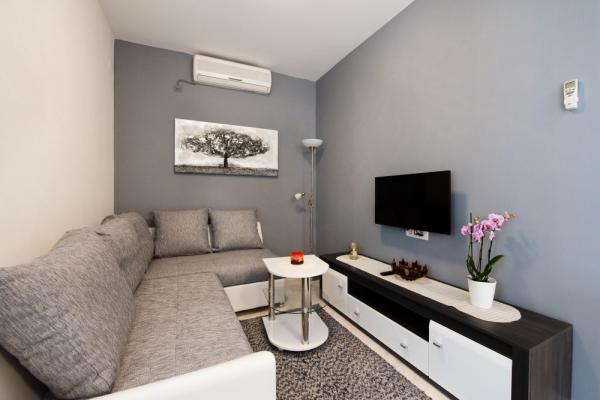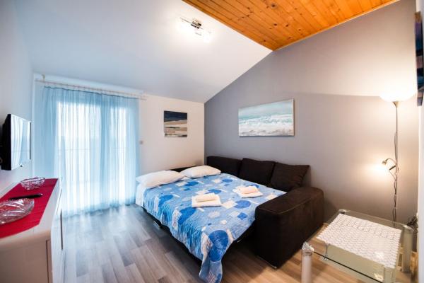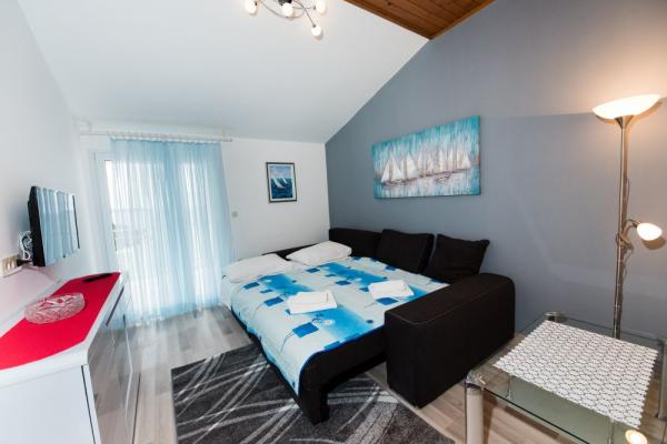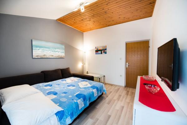 Schöne Aussicht, gepflegte Wohnung mit allen notwendigen Annehmlichkeiten, freundliche Gastgeber immer zu Ihren Diensten. Es ist fünf Minuten zu Fuß vom Meer entfernt und die einzige Beschwerde ist, dass es keinen Schatten am Strand gibt, aber es gibt einen anderen Strand etwas weiter entfernt, der genug Schatten hat. Die Zeit, in der wir extrem ruhig waren und uns wirklich im richtigen Urlaub befanden, abseits von Lärm und Stress.