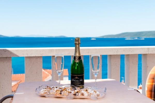 Ich träumte von einer Terrasse mit einem wunderschönen Blick auf das Meer, ich konnte sitzen mit einem Glas Wein, beobachten die Schiffe gehen ...... die Art und Weise, um ein Buch zu lesen, meditieren ........ Ich wurde nicht enttäuscht, es war eine super gut. Der Strand war in der Nähe, ruhig und friedlich, ganz Ort für diejenigen, die die Sonne mögen und für diejenigen, die coole suchen in den Schatten. Shop gut gefüllt, in der Nähe zu gehen. Startseite przemili, Wohnung sauber und ordentlich, sehr gut ausgestattet. Schöne und unvergessliche Blick von der Terrasse - eine Erinnerung für lange Winterabende. In der Nähe des schönen Trogir, bei einem abendlichen Spaziergang, Abendessen. Flucht aus der Insel ein bisschen langweilig, ist es die einzige Brücke in der Hauptverkehrszeit ein wenig Stand im Verkehr, aber nicht die Tatsache, dass es sich lohnt, dorthin zu gehen, um den Frieden und die Ruhe erleben zu ändern. Es gibt keine laute Musik, denn es gibt keine Bars, Clubs und dergleichen gibt es keine Menschenmassen. Ich würde diese Wohnung für diejenigen, die nach einem ruhigen Ort suchen, und es empfehlen? Es ist auf einem viel Sonne und azurblau, Wunderwasser.