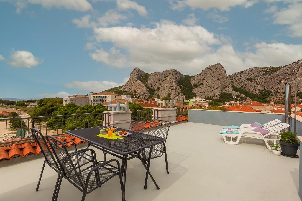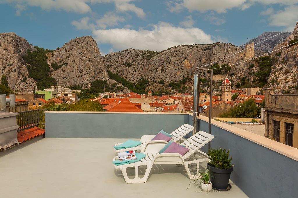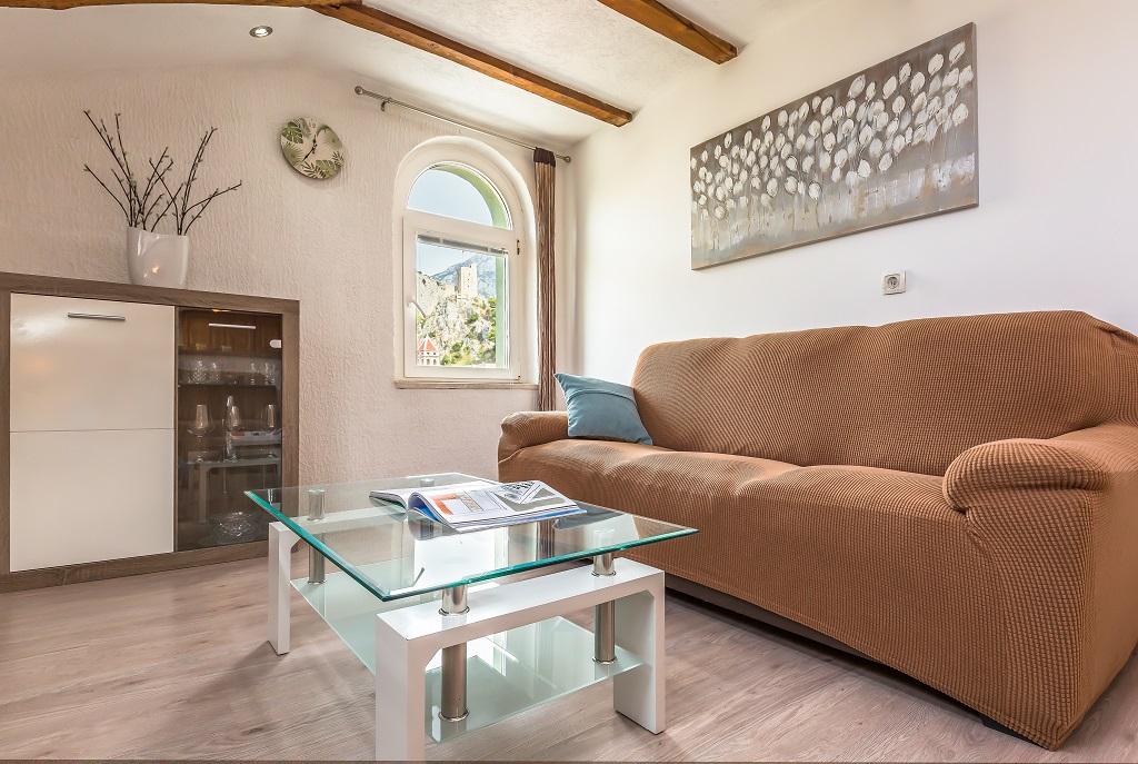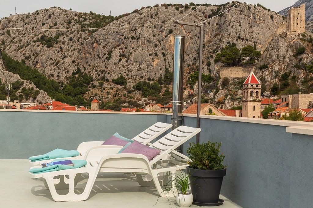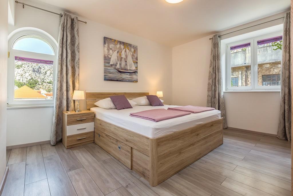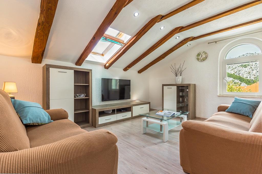 Wohnung 1: Die Wohnung ist ca. 90m² groß: Wohnzimmer mit SAT-TV, Couch; Schlafzimmer mit Doppelbett; Schlafzimmer mit zwei getrennten Betten; voll ausgestattete Küche und Esszimmer; Badezimmer mit Dusche und Waschmaschine; und eine private Terrasse mit Sitzgelegenheiten. Internet Wi-Fi, Klimaanlage. 20 m² große private Terrasse hat einen wunderschönen Blick auf die Adria, den Strand, die Altstadt von Omiš. Gratis Parkplätze. Wohnung 2: Die Wohnung ist ca. 90m² groß: Wohnzimmer mit SAT-TV, Couch; Schlafzimmer mit einem Doppelbett und einem Bett für 1 Person; Schlafzimmer mit Doppelbett; voll ausgestattete Küche und Esszimmer; Badezimmer mit Dusche und Waschmaschine; und eine private Terrasse mit Sitzgelegenheiten. Internet Wi-Fi, Klimaanlage. 20 m² große private Terrasse mit Grill, Blick auf die Altstadt von Omiš. Gratis Parkplätze.