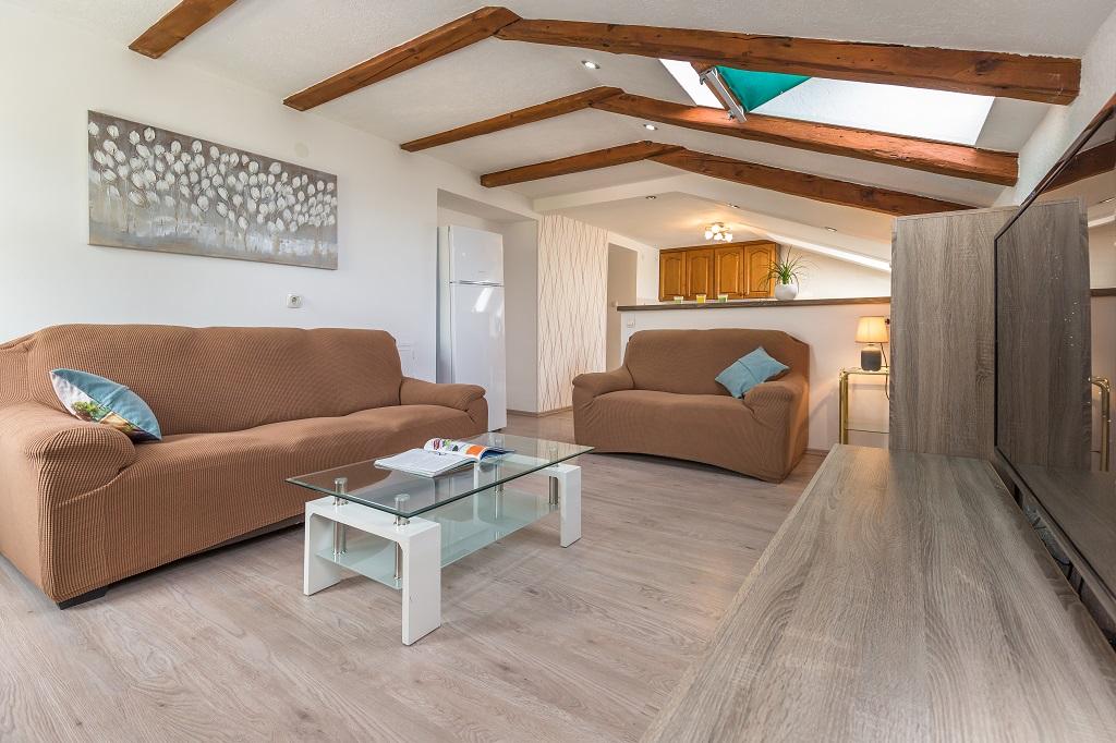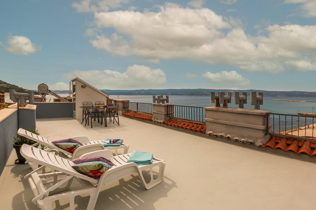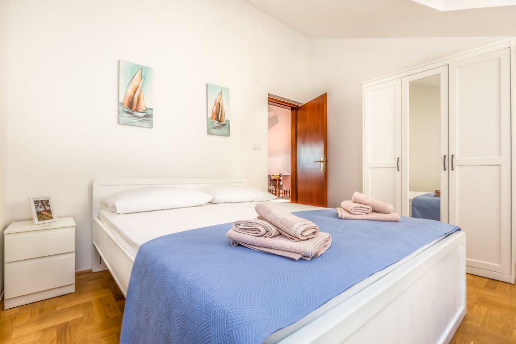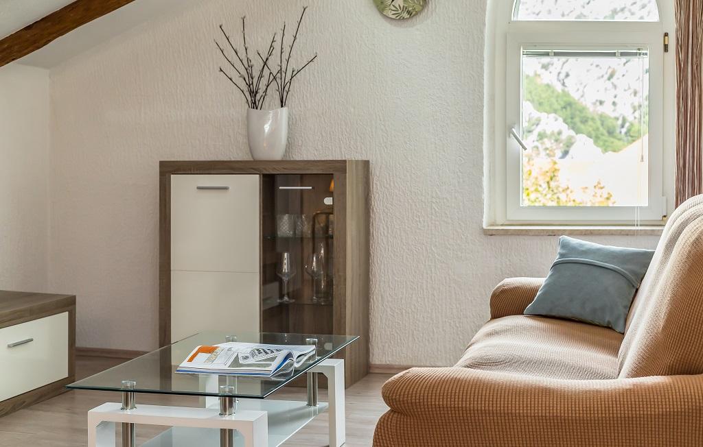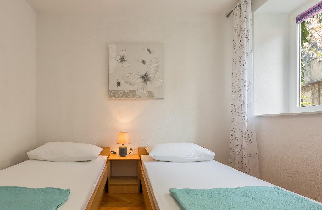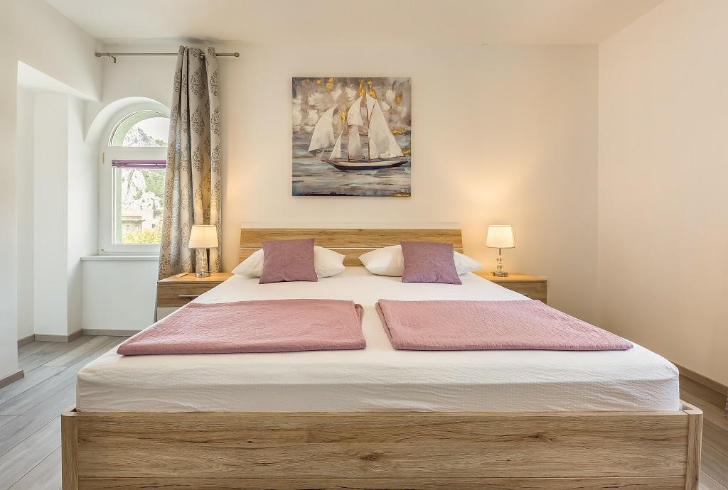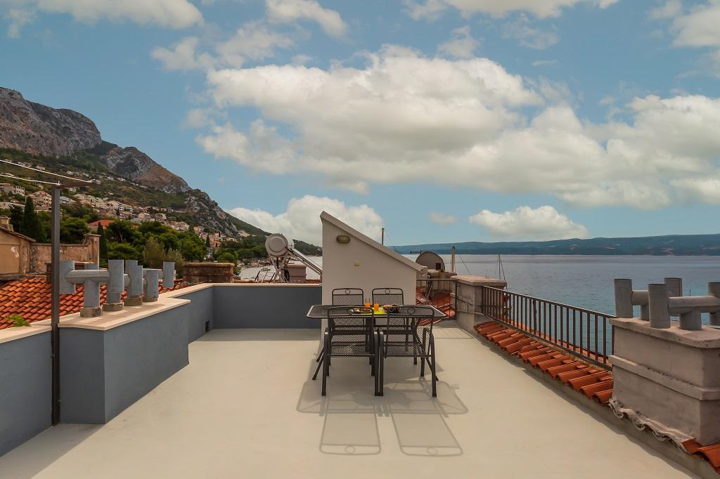 Wohnung 1: Die Wohnung ist ca. 90m² groß: Wohnzimmer mit SAT-TV, Couch; Schlafzimmer mit Doppelbett; Schlafzimmer mit zwei getrennten Betten; voll ausgestattete Küche und Esszimmer; Badezimmer mit Dusche und Waschmaschine; und eine private Terrasse mit Sitzgelegenheiten. Internet Wi-Fi, Klimaanlage. 20 m² große private Terrasse hat einen wunderschönen Blick auf die Adria, den Strand, die Altstadt von Omiš. Gratis Parkplätze. Wohnung 2: Die Wohnung ist ca. 90m² groß: Wohnzimmer mit SAT-TV, Couch; Schlafzimmer mit einem Doppelbett und einem Bett für 1 Person; Schlafzimmer mit Doppelbett; voll ausgestattete Küche und Esszimmer; Badezimmer mit Dusche und Waschmaschine; und eine private Terrasse mit Sitzgelegenheiten. Internet Wi-Fi, Klimaanlage. 20 m² große private Terrasse mit Grill, Blick auf die Altstadt von Omiš. Gratis Parkplätze.