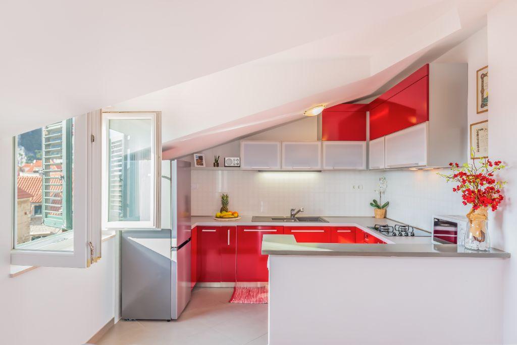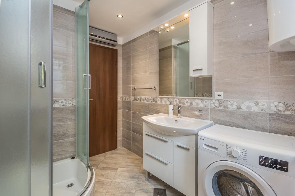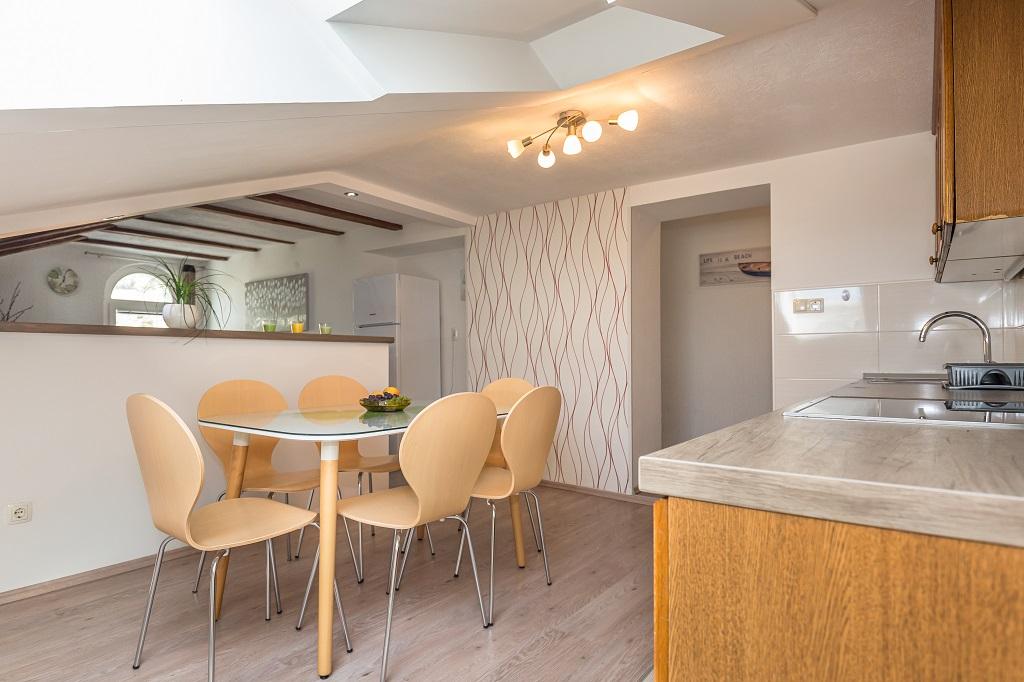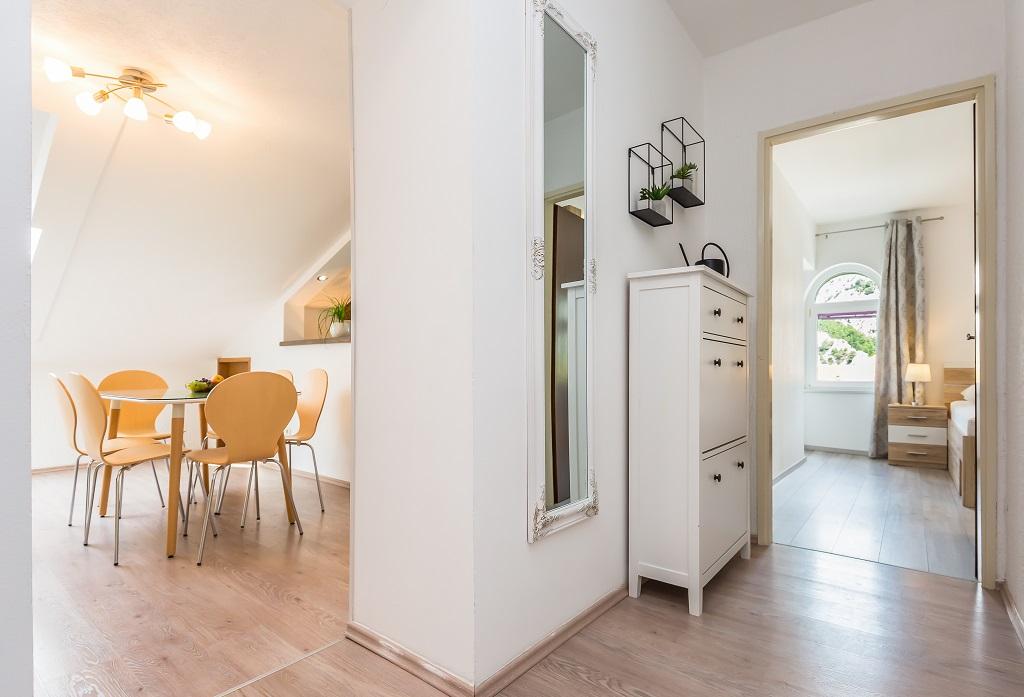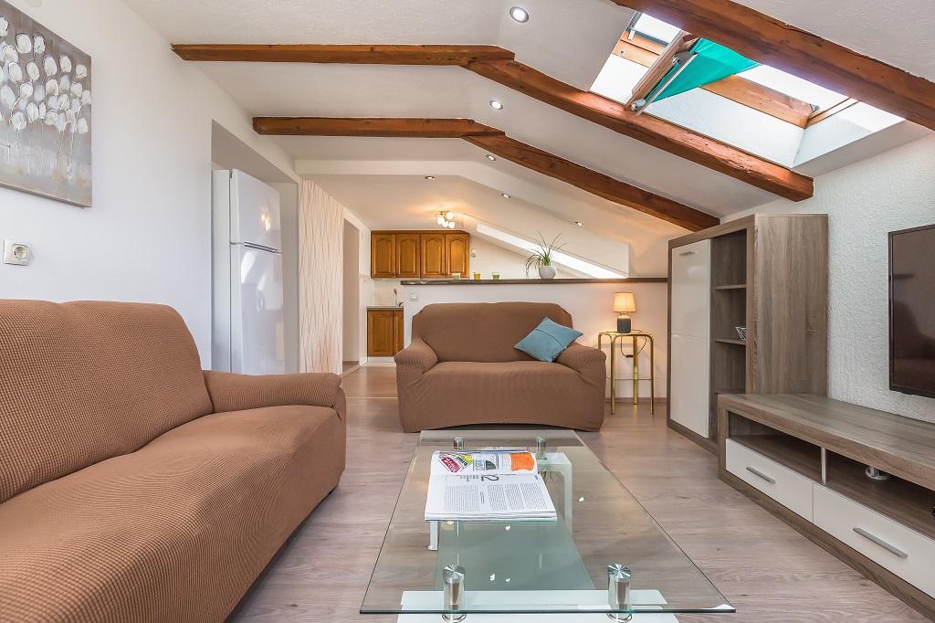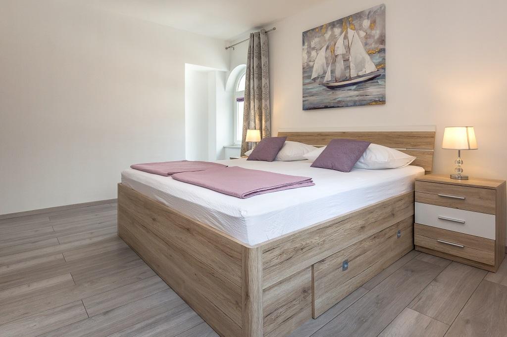 Wohnung 1: Die Wohnung ist ca. 90m² groß: Wohnzimmer mit SAT-TV, Couch; Schlafzimmer mit Doppelbett; Schlafzimmer mit zwei getrennten Betten; voll ausgestattete Küche und Esszimmer; Badezimmer mit Dusche und Waschmaschine; und eine private Terrasse mit Sitzgelegenheiten. Internet Wi-Fi, Klimaanlage. 20 m² große private Terrasse hat einen wunderschönen Blick auf die Adria, den Strand, die Altstadt von Omiš. Gratis Parkplätze. Wohnung 2: Die Wohnung ist ca. 90m² groß: Wohnzimmer mit SAT-TV, Couch; Schlafzimmer mit einem Doppelbett und einem Bett für 1 Person; Schlafzimmer mit Doppelbett; voll ausgestattete Küche und Esszimmer; Badezimmer mit Dusche und Waschmaschine; und eine private Terrasse mit Sitzgelegenheiten. Internet Wi-Fi, Klimaanlage. 20 m² große private Terrasse mit Grill, Blick auf die Altstadt von Omiš. Gratis Parkplätze.