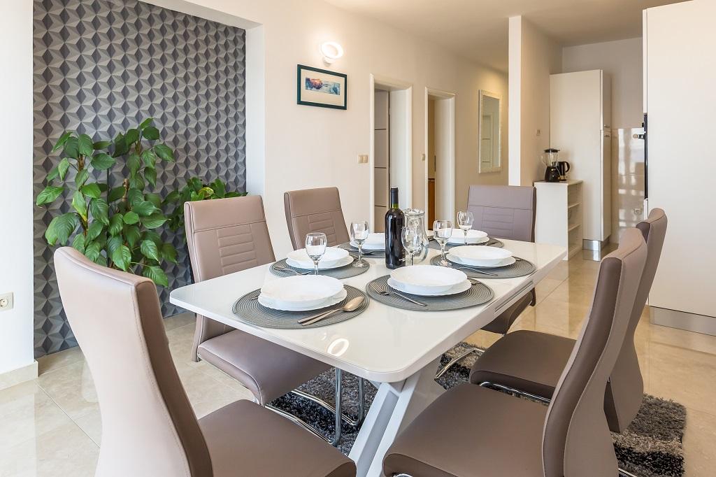 WOHNUNG SNJEZANA 90 m2 große Wohnung. Esszimmer mit Tisch für 6 Personen. Voll ausgestattete Küche. 2 Schlafzimmer und 1 Wohnzimmer. Im Wohnzimmer gibt es ein Schlafsofa für 2 Personen. Zustellbetten sind vorhanden. Das Badezimmer verfügt über eine Dusche, eine Waschmaschine und eine Toilette. Klima. W-lan. SAT-TV. Balkon mit Blick auf die Stadt, das Meer und die Insel Brac. Private Parkplätze stehen für 1 Auto zur Verfügung. APARTMENT DRINE Apartment für 4 Personen. Die 40 m2 große Wohnung verfügt über zwei Schlafzimmer. SAT-TV. W-lan. Badezimmer mit Dusche und WC. Voll ausgestattete Außenküche. 2 private Terrassen. 30 m2 große Terrasse mit Esstisch und Sonnenschutz, Meerblick. Privater Parkplatz. STUDIO TATJANA Großes Studio-Apartment mit 15 m2 Schlafzimmer mit Doppelbett und Einzelbett, Minikühlschrank und eigenem Bad mit Dusche und WC. W-lan. SAT-TV. Voll ausgestattete Gemeinschaftsküche. 30 m2 Terrasse mit Tisch und Schatten, Meerblick.