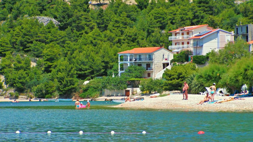 Kurtaxe ist im Preis inbegriffen.Die Wohnungen befinden sich in ruhiger Lage nahe dem Strand und dem Wald. Die Wohnung hat einen schönen Blick auf die Bäume und das Meer. Parkplätze befinden sich direkt neben dem Haus und der Zugang zum Strand erfolgt über eine Treppe. Der Strand ist groß und geht allmählich ins Meer über. Für kleine Kinder geeignet! Am Strand gibt es natürlichen Schatten. Der Vorteil ist, dass jedes Zimmer der Wohnung über eine eigene Klimaanlage verfügt. Die Wohnung verfügt über eine Grundausstattung, reicht aber für einen zehntägigen Aufenthalt aus. Die meiste Zeit verbringen wir am Strand. Die Wohnung und die Ausstattung waren bei der Ankunft sauber und bezugsfertig. Das Haus ist für alle, die einen ruhigen Ort in Strandnähe ohne große Ansprüche an die Ausstattung suchen. Es gibt eine Klimaanlage und WLAN. Rasturace auf der anderen Seite des Strandes, etwa 200 m vom Haus entfernt.