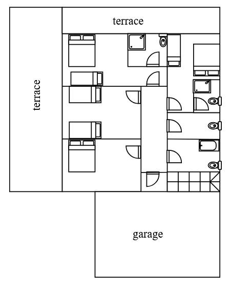 Zweite Reihe vom Meer und Strand! Dorfrand, ruhiger Ort! - Wir bieten >>> großes Apartment 8+2 im Erdgeschoss des Hauses für 8-10 Personen - 4x Schlafzimmer, 3x Badezimmer mit WC, 1x WC, 3x kleine Küche, große Terrasse 40m2!! >>> zwei Apartments für 4 Personen haben jeweils 1x Schlafzimmer, 1x Schlafzimmer mit Miniküche, 1x Badezimmer mit WC, 1x WC, Balkon mit Meerblick!! >>> zwei Studios für 2+1 Personen haben jeweils 1x Miniküche, 1x Badezimmer mit WC, Balkon mit Meerblick