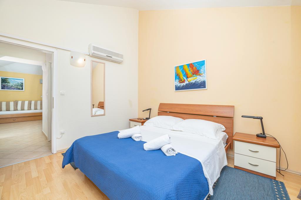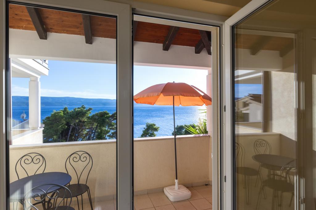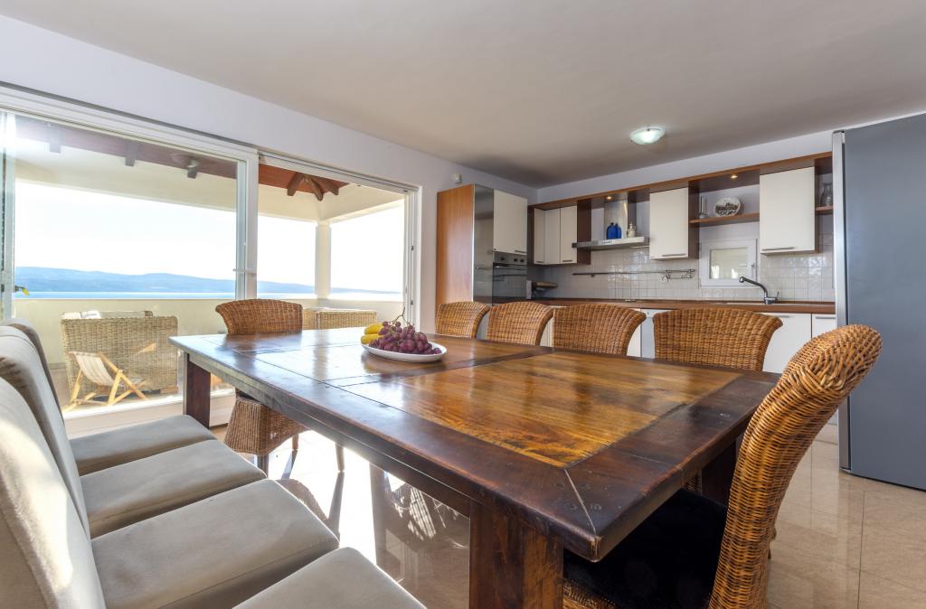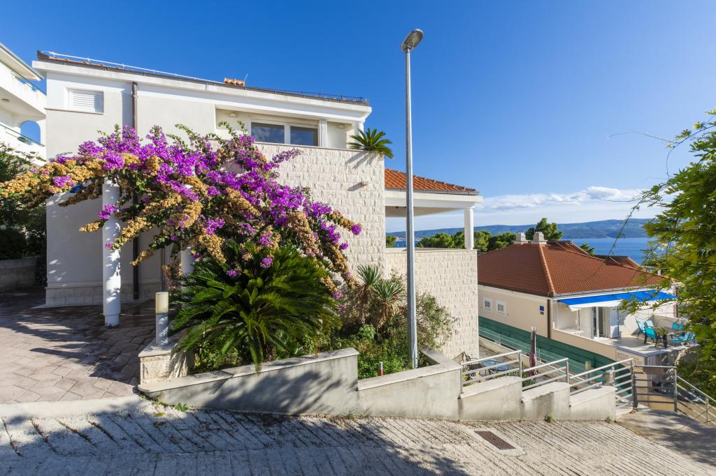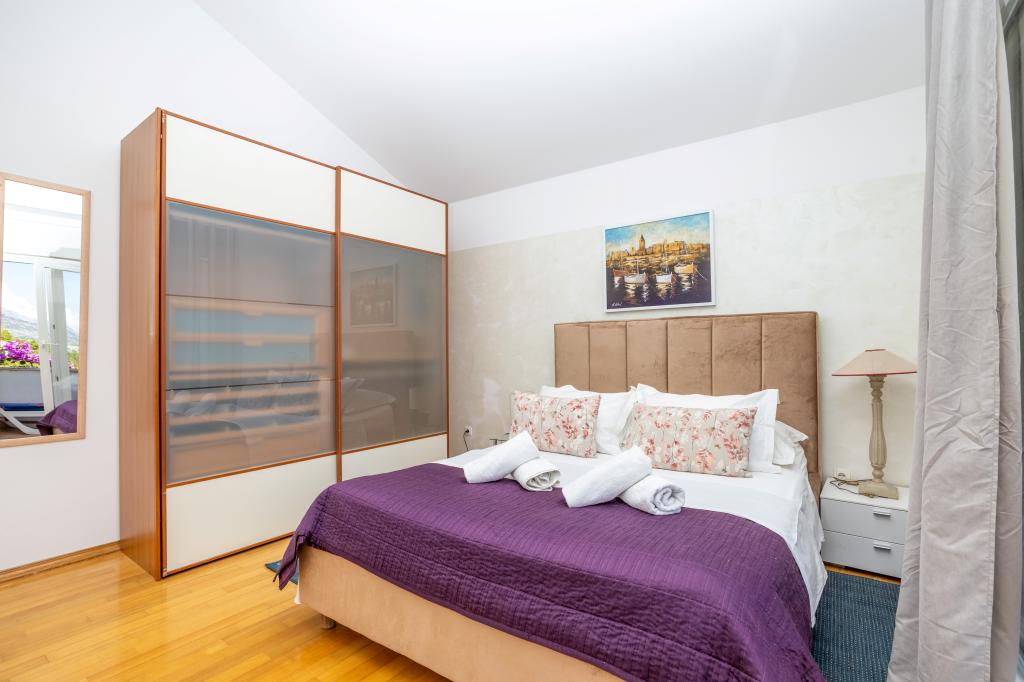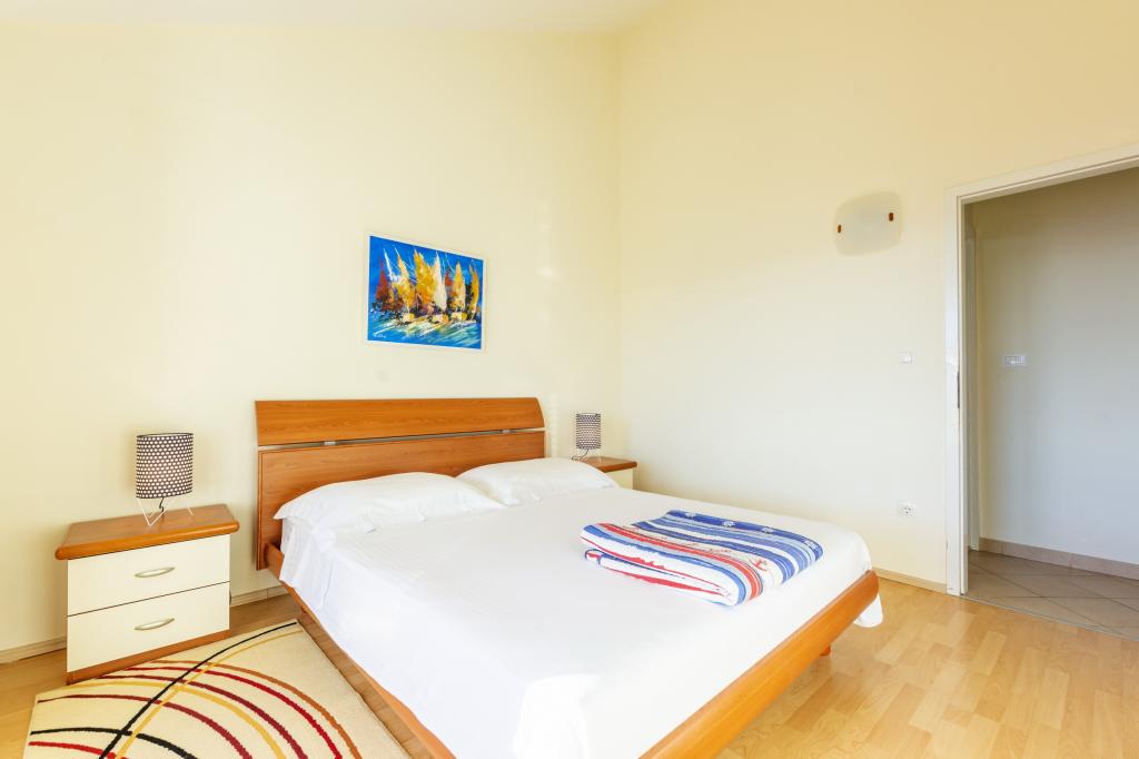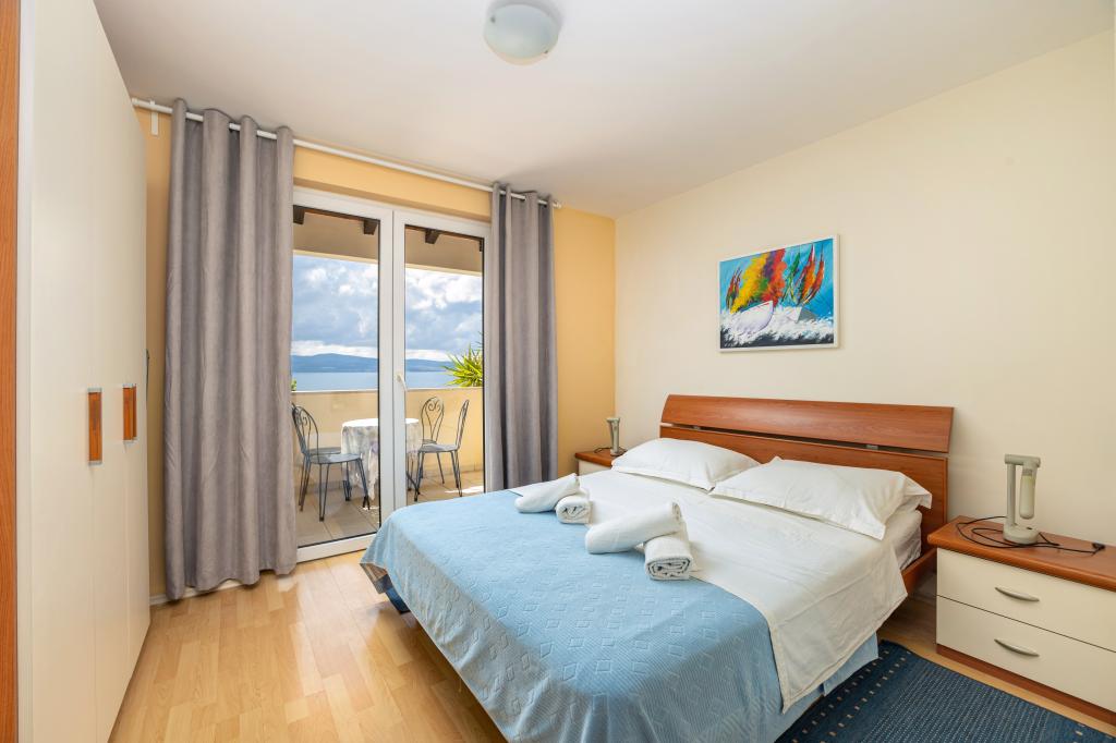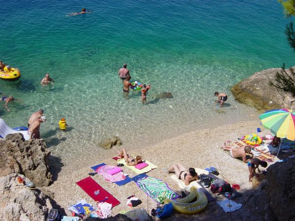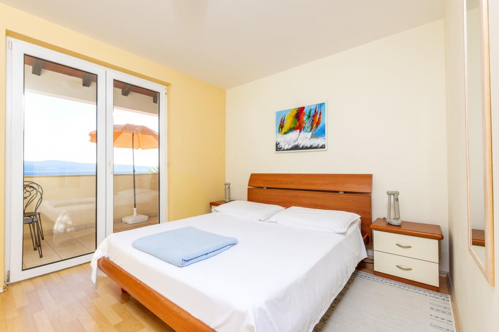 Unterkunft in neu gebauten, äußerst komfortablen und hervorragend ausgestatteten Apartments. Die Anlage liegt 3 km vom Zentrum von Omiš entfernt. Insgesamt acht Apartments in erster Reihe zum Meer. Alle Apartments verfügen über große Terrassen mit Blick auf das Meer und die Insel Brač. Parkplätze befinden sich direkt neben der Anlage. Die Apartments liegen unterhalb der Hauptstraße (300 Meter), direkt am Meer und einem großen Kiesstrand. Es gibt vier Apartmenttypen: Typ 2+2 mit einem separaten Schlafzimmer mit Doppelbett und einem Wohnzimmer mit zwei Betten, Typ 2+2 großes Studio, Typ 4+2 große Luxus-Apartments mit zwei Schlafzimmern mit Doppelbett und einem großen Wohnzimmer mit zwei Ausziehbetten sowie ein weiteres großes Deluxe-Apartment. Die Wohnung vom Typ 14+2 ist in Wirklichkeit eine dreistöckige Villa mit 300 m² Wohnfläche. Sie verfügt über einen 9 x 4 Meter großen, beheizten Swimmingpool, sieben Doppelzimmer, zwei große Wohnzimmer mit Balkonen und Terrassen, vier Badezimmer, ein separates WC, einen Außengrill, eine Sauna, einen Fitnessraum usw. Der Pool steht ausschließlich den Bewohnern der Wohnung A 14+2 zur Verfügung.