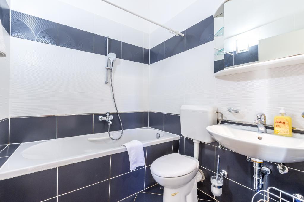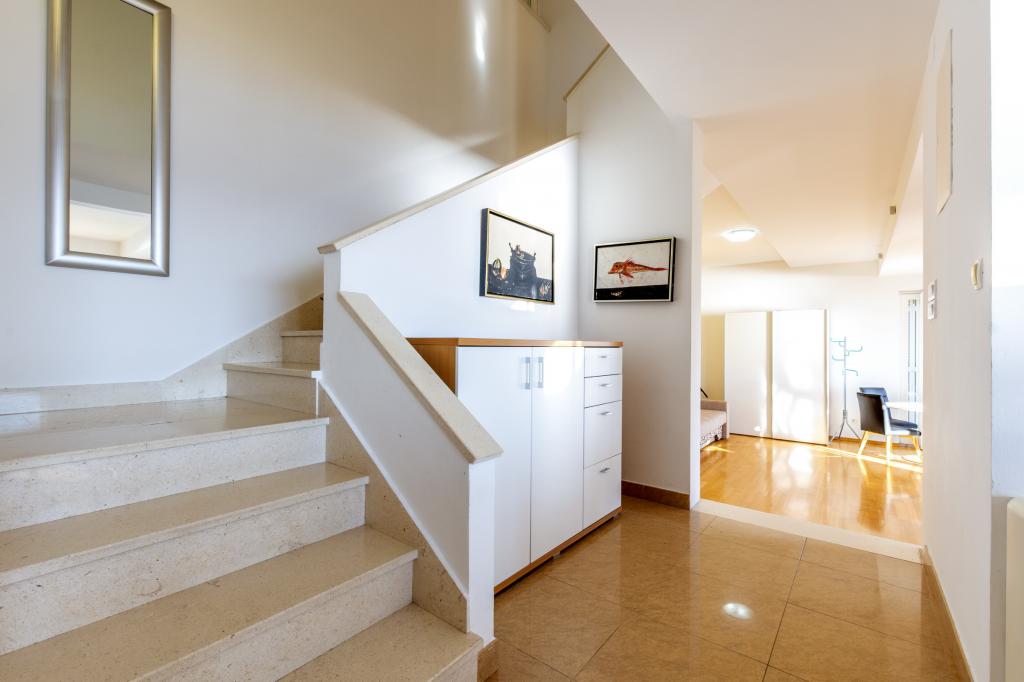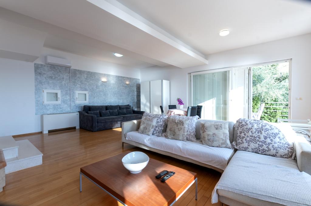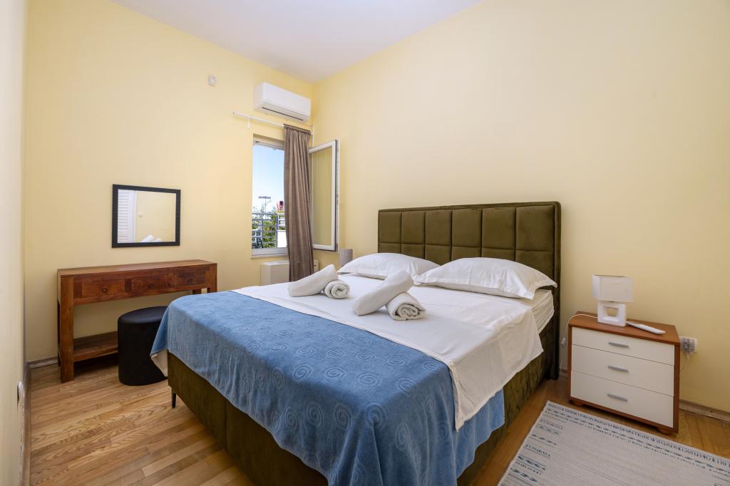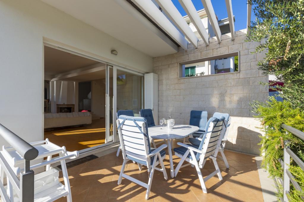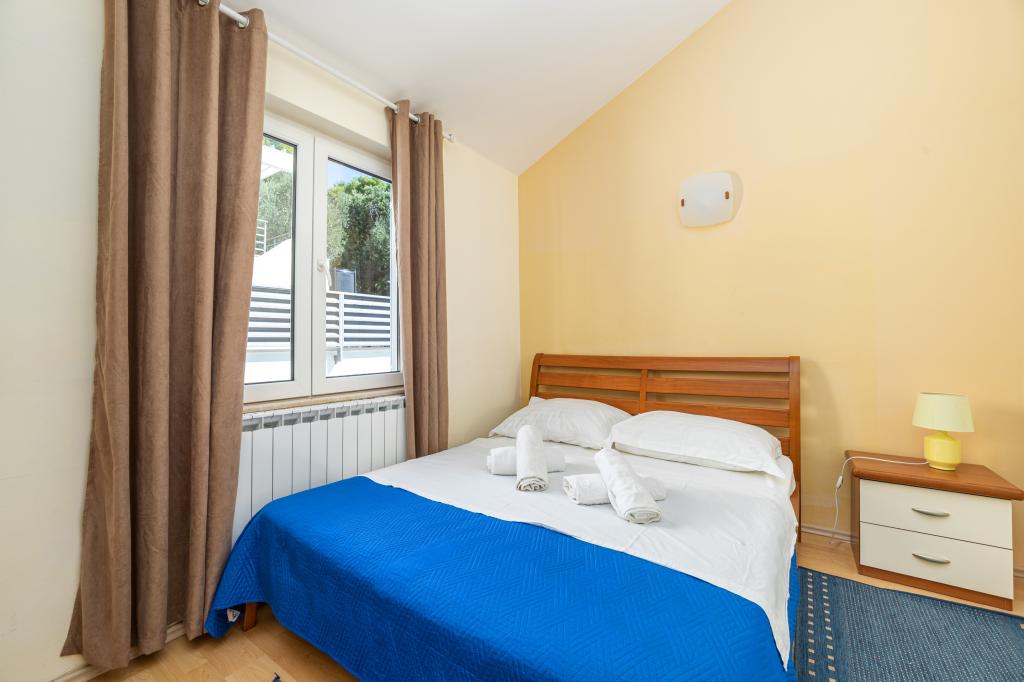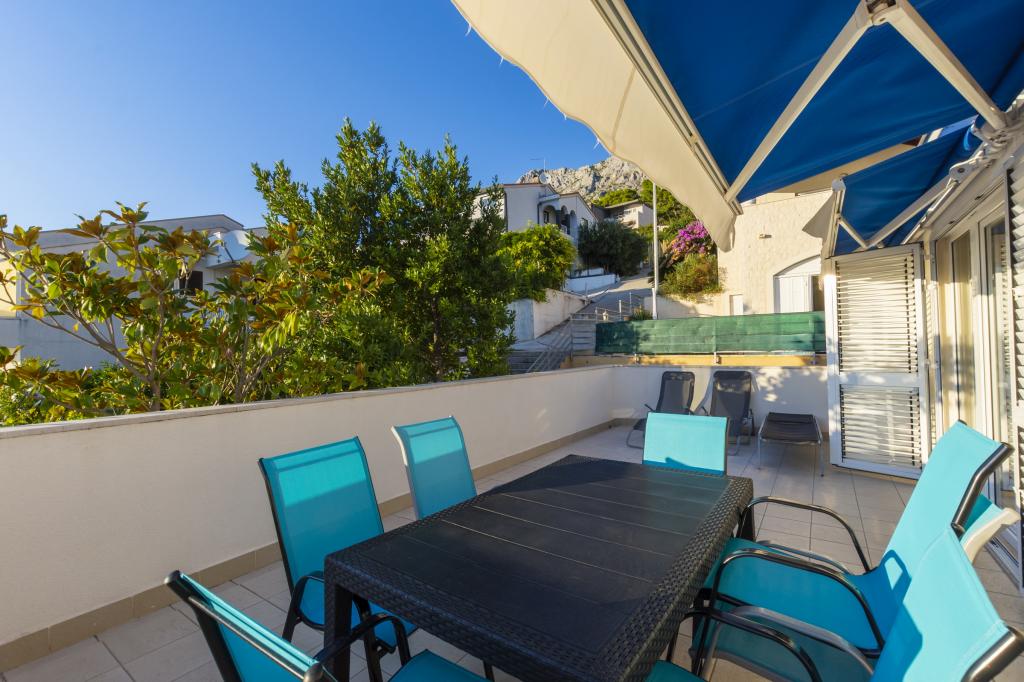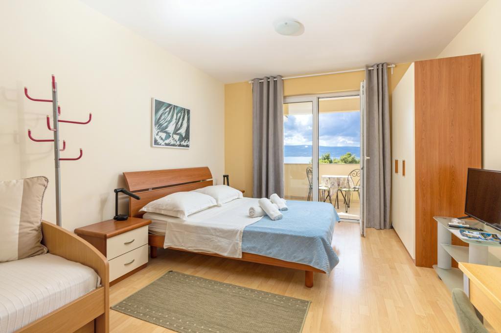 Unterkunft in neu gebauten, äußerst komfortablen und hervorragend ausgestatteten Apartments. Die Anlage liegt 3 km vom Zentrum von Omiš entfernt. Insgesamt acht Apartments in erster Reihe zum Meer. Alle Apartments verfügen über große Terrassen mit Blick auf das Meer und die Insel Brač. Parkplätze befinden sich direkt neben der Anlage. Die Apartments liegen unterhalb der Hauptstraße (300 Meter), direkt am Meer und einem großen Kiesstrand. Es gibt vier Apartmenttypen: Typ 2+2 mit einem separaten Schlafzimmer mit Doppelbett und einem Wohnzimmer mit zwei Betten, Typ 2+2 großes Studio, Typ 4+2 große Luxus-Apartments mit zwei Schlafzimmern mit Doppelbett und einem großen Wohnzimmer mit zwei Ausziehbetten sowie ein weiteres großes Deluxe-Apartment. Die Wohnung vom Typ 14+2 ist in Wirklichkeit eine dreistöckige Villa mit 300 m² Wohnfläche. Sie verfügt über einen 9 x 4 Meter großen, beheizten Swimmingpool, sieben Doppelzimmer, zwei große Wohnzimmer mit Balkonen und Terrassen, vier Badezimmer, ein separates WC, einen Außengrill, eine Sauna, einen Fitnessraum usw. Der Pool steht ausschließlich den Bewohnern der Wohnung A 14+2 zur Verfügung.