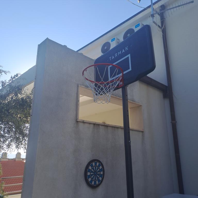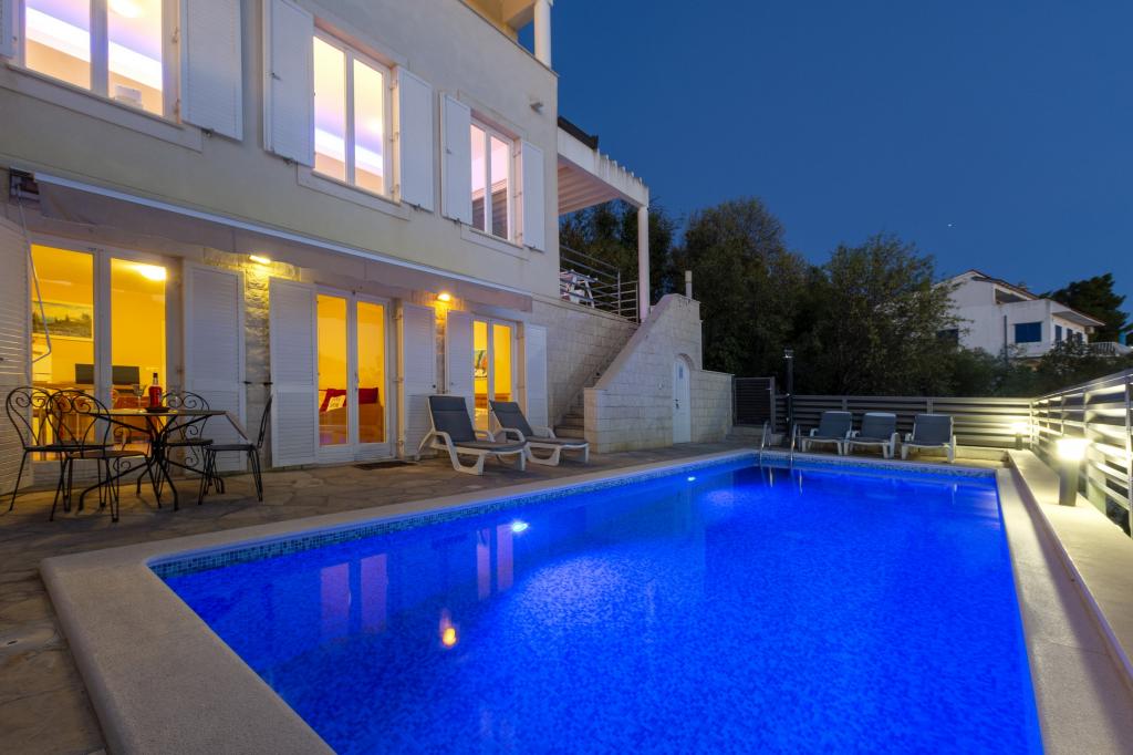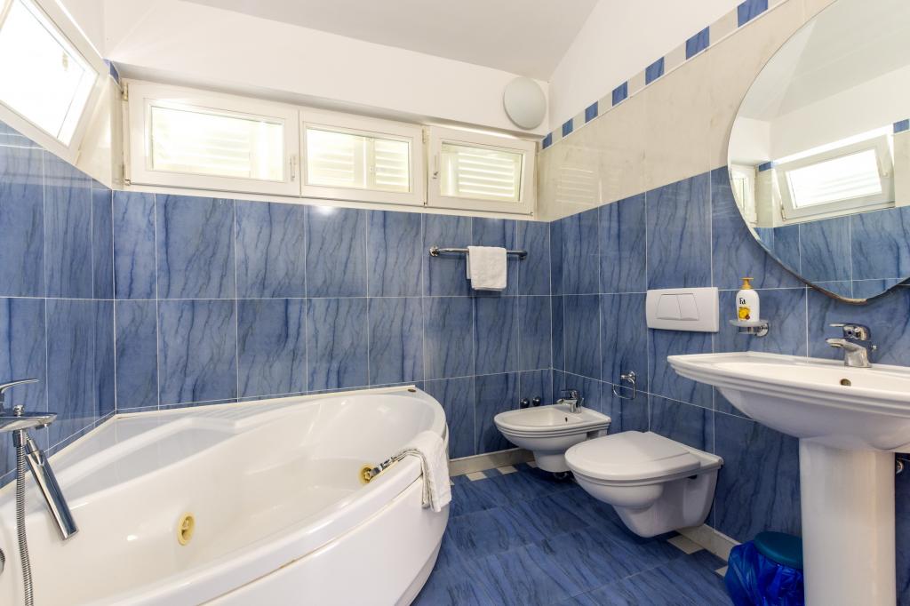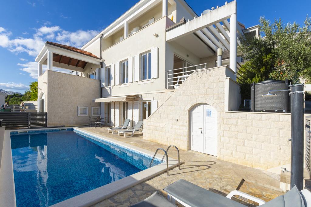 Kurtaxe ist im Preis inbegriffen.Jeder Gast wird bei Ankunft mit einem Begrüßungsgetränk empfangen. Gerne vermieten wir für unsere Gäste ein Boot oder Schnellboot, organisieren Raftingtouren auf dem Fluss Cetina, Ausflüge zur Insel Brač und vieles mehr. Alle Apartments verfügen über einen Grillplatz im Freien. Parkplätze stehen direkt neben der Villa zur Verfügung. Wunderschöne Kiesstrände befinden sich nur 30 Meter von der Villa entfernt. Der Pool ist ausschließlich für die Gäste des großen Luxusapartments Typ A 14+2 (Villa – separates Gebäude) reserviert. Andere Apartments haben keinen Zugang zum Pool. Die Villa mit Pool (großes Apartment Typ A 14+2) ist ein separates Gebäude. Sie verfügt über sieben Doppelzimmer, vier Badezimmer mit WC, ein separates WC, zwei Wohnzimmer, einen Fitnessraum mit Sauna, Dartscheibe, Basketballkorb usw. Alle anderen Apartments (Typ A 2+2, Studio+2 und A 4+2) befinden sich in einem separaten Gebäude, das 6 Meter von der Villa mit Pool entfernt liegt.