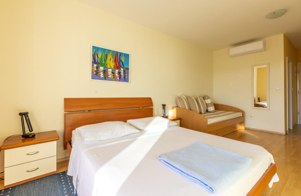 Mehr lesen UnterkunftseinheitenZahlung: 20 % Anzahlung bei Buchung, Restzahlung (80 %) bei Ankunft in der Wohnung in bar. Die Anzahlung wird direkt auf das Konto des Eigentümers überwiesen. Die ideale Anreisezeit ist nach 15:00 Uhr, die ideale Abreisezeit bis 10:00 Uhr. Die Villa mit Pool (große Wohnung Typ A 14+2) befindet sich in einem separaten Gebäude. Alle anderen Wohnungen (Typ A 2+2, Studio +2 und A 4+2) liegen in einem weiteren separaten Gebäude, das 6 Meter von der Villa mit Pool entfernt ist. Die Anreisezeit in der Villa mit Pool (große Wohnung Typ A 14+2) ist nach 16:00 Uhr, die ideale Abreisezeit bis 10:00 Uhr. Die Anreisezeit in den anderen Wohnungen ist nach 15:00 Uhr, die ideale Abreisezeit bis 10:00 Uhr. Wir verfügen außerdem über eine eigene Boje zum Anlegen von Booten (Schnellboote, Boote usw.), die sich direkt vor der Wohnung befindet.